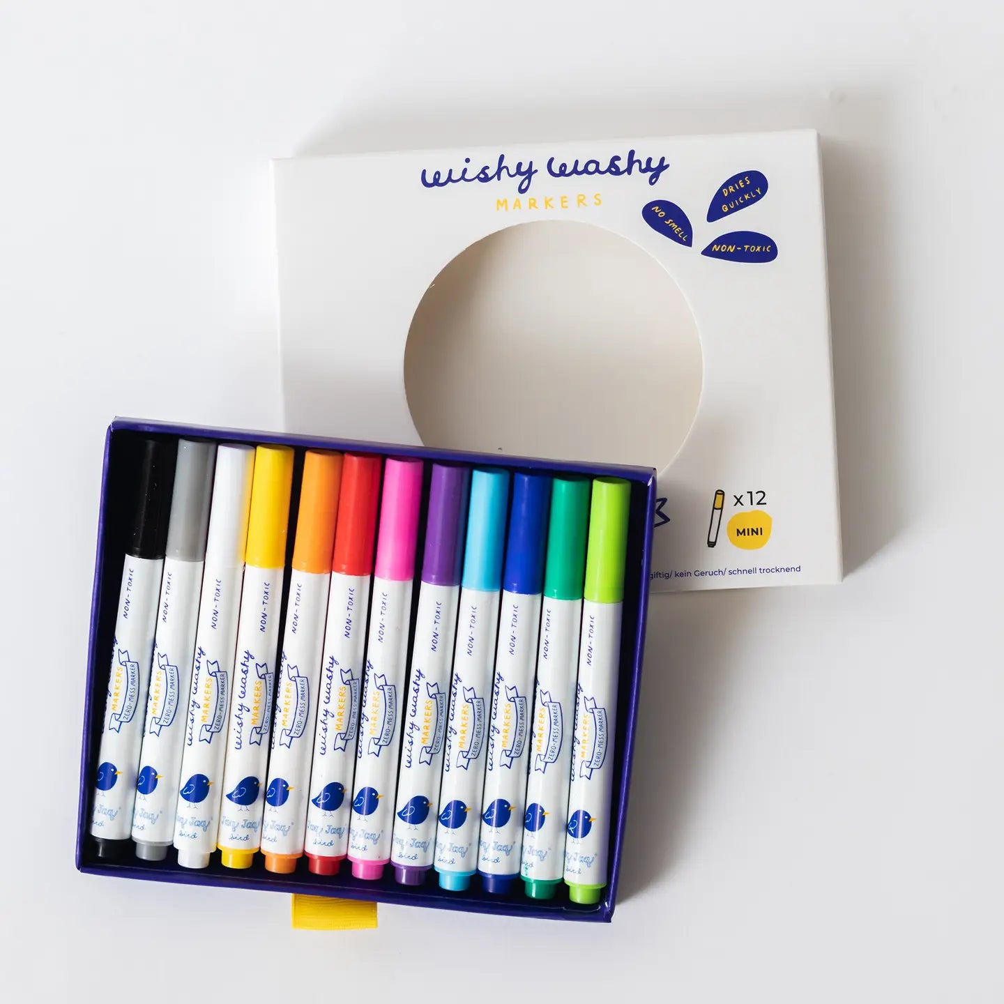 Jaq Jaq Bird Wishy Washy Markers Mini - Set of 12 Assorted Colors