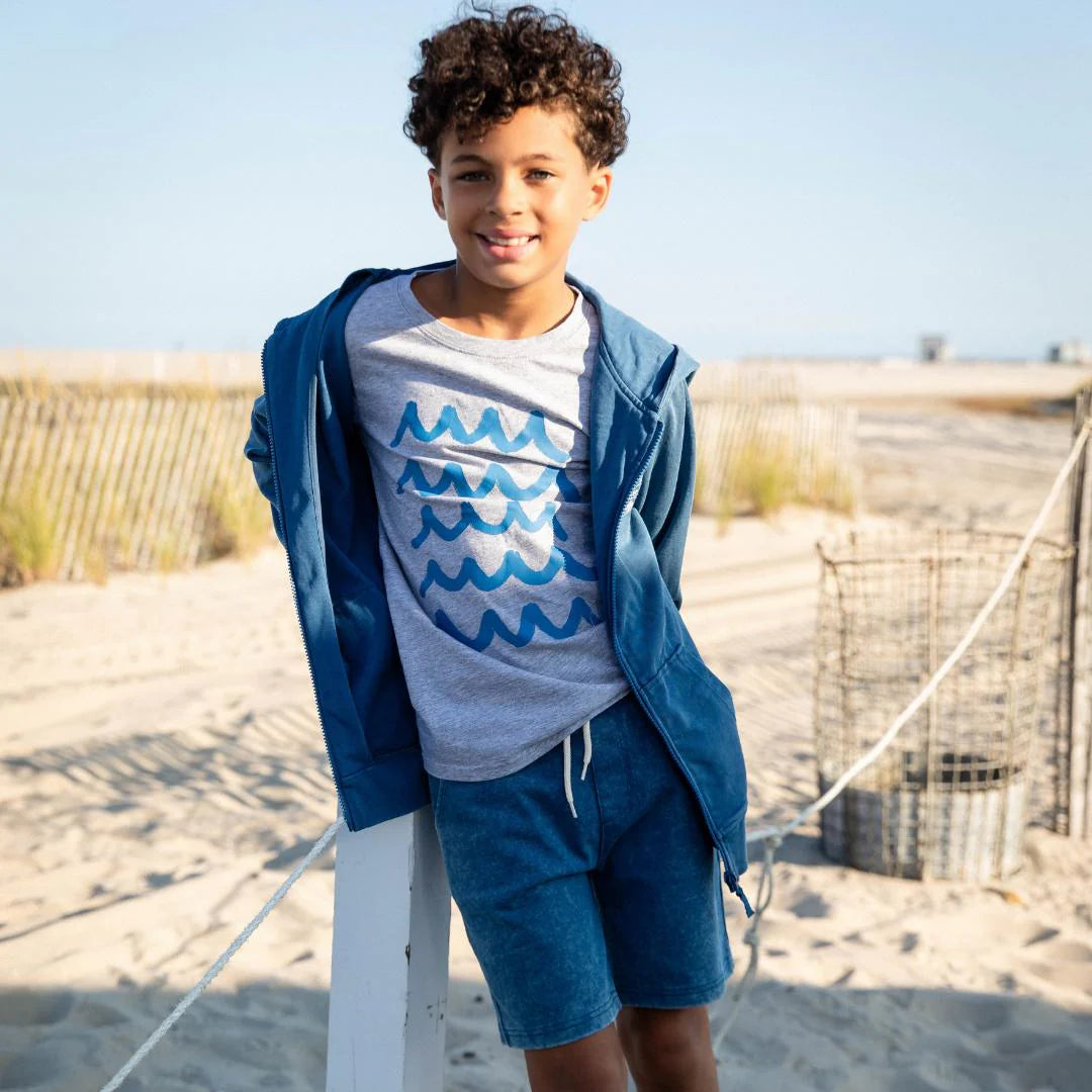 Catch the wave of style with our Graphic Short Sleeve Tee featuring cool ocean waves! Crafted from soft, breathable fabric, this tee offers comfort for all-day play. Its vibrant design adds a splash of fun to any outfit, making it perfect for beach days or casual outings. Let your little one ride the fashion wave!