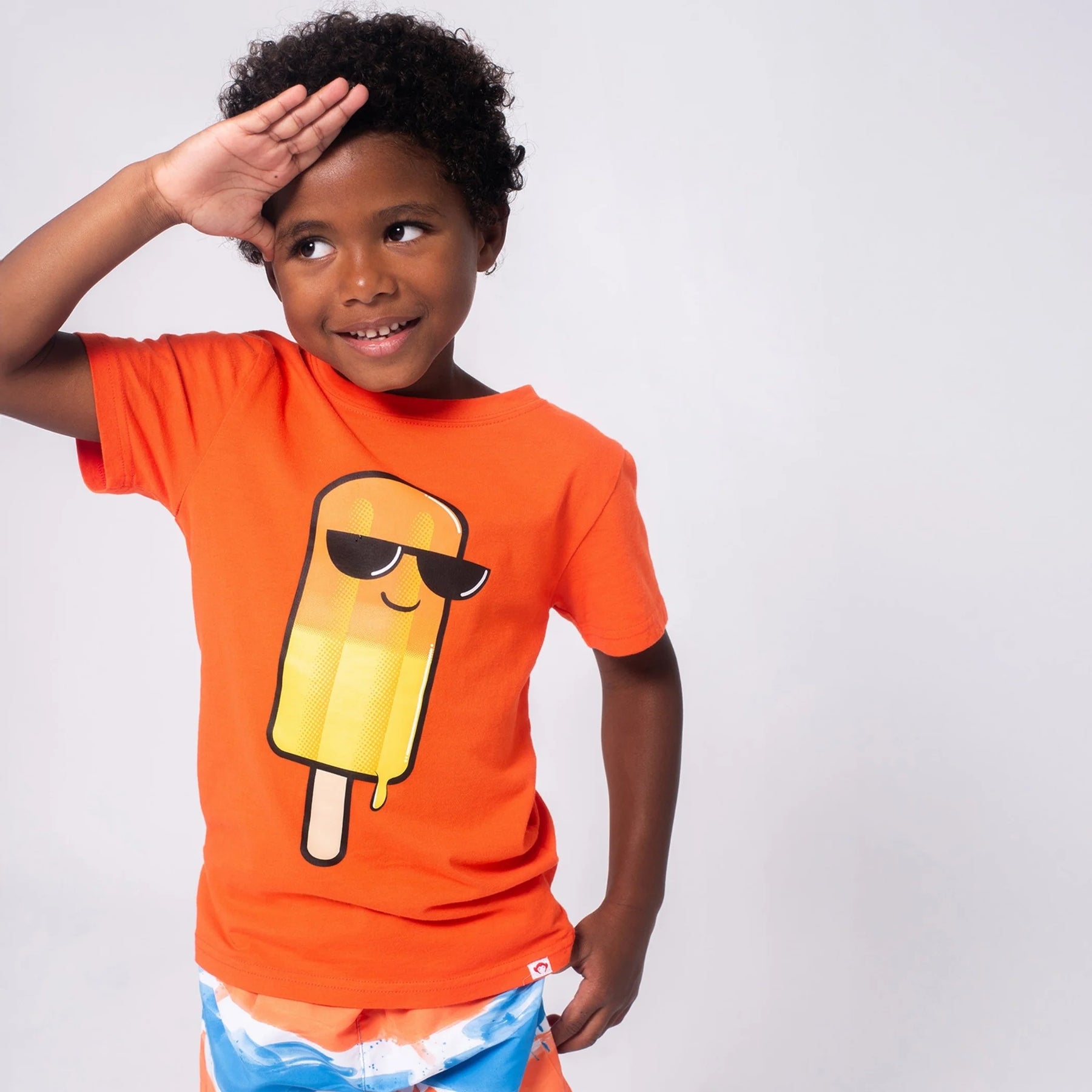 Cool off in style with our Graphic Short Sleeve Tee featuring a cheerful orange popsicle! Made from soft, breathable fabric, this fun tee offers comfort for all-day wear. Perfect for summer adventures or playdates, it brings a splash of color to any outfit. Let your little one celebrate sunny days with this tasty design!