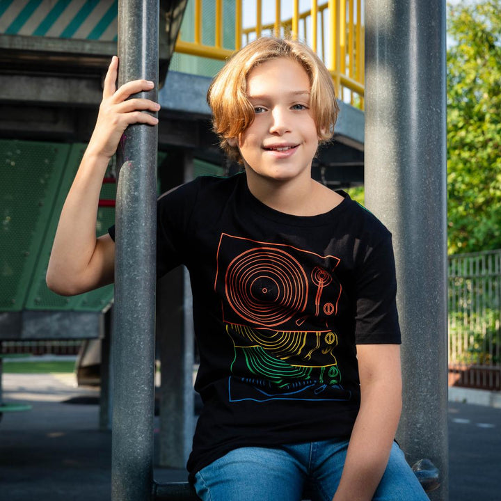 Get ready to spin into style with our Graphic Short Sleeve Tee featuring awesome DJ equipment! Made from soft, breathable fabric, this tee blends quality and fun. Perfect for music-loving kids, it’s versatile enough for playdates or parties. Let your little DJ express their passion with this stylish and comfortable tee that’s sure to impress!