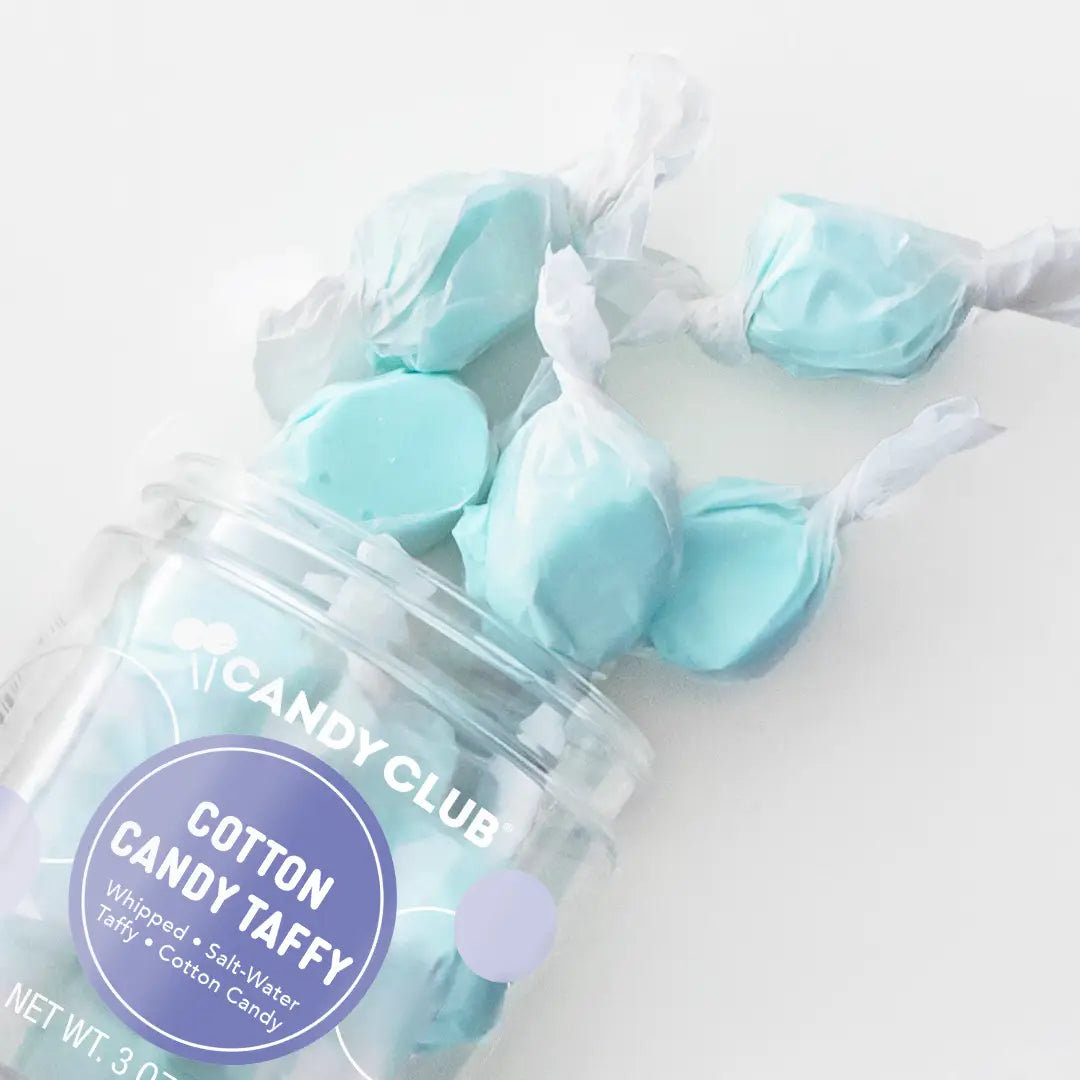 The wonderful taste of fluffy cotton candy in a small chewy candy. This saltwater taffy is whipped, not pulled, allowing for a flavorful, less sticky, softer piece of taffy. Made in the USA *Label and tamper seal design may vary.