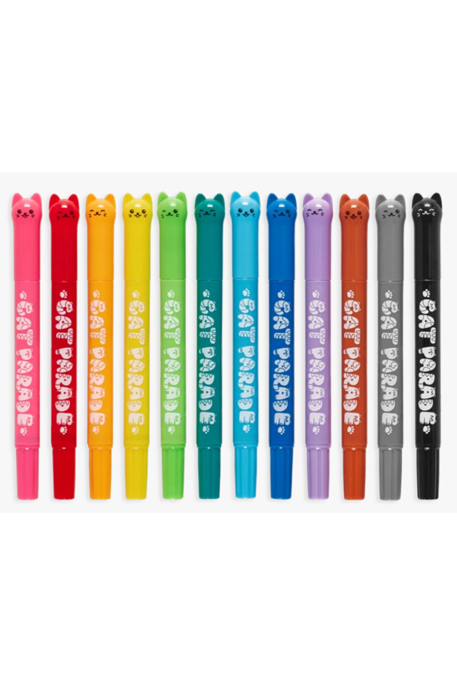 Kitten face cuteness makes these gel crayons an attention-getter. 12 bright twist-up gel crayons are topped with a variety of charming cat expressions making the Cat Parade Gel Crayons purr-fect. Add water and a paintbrush to create watercolor effects on your coloring too.