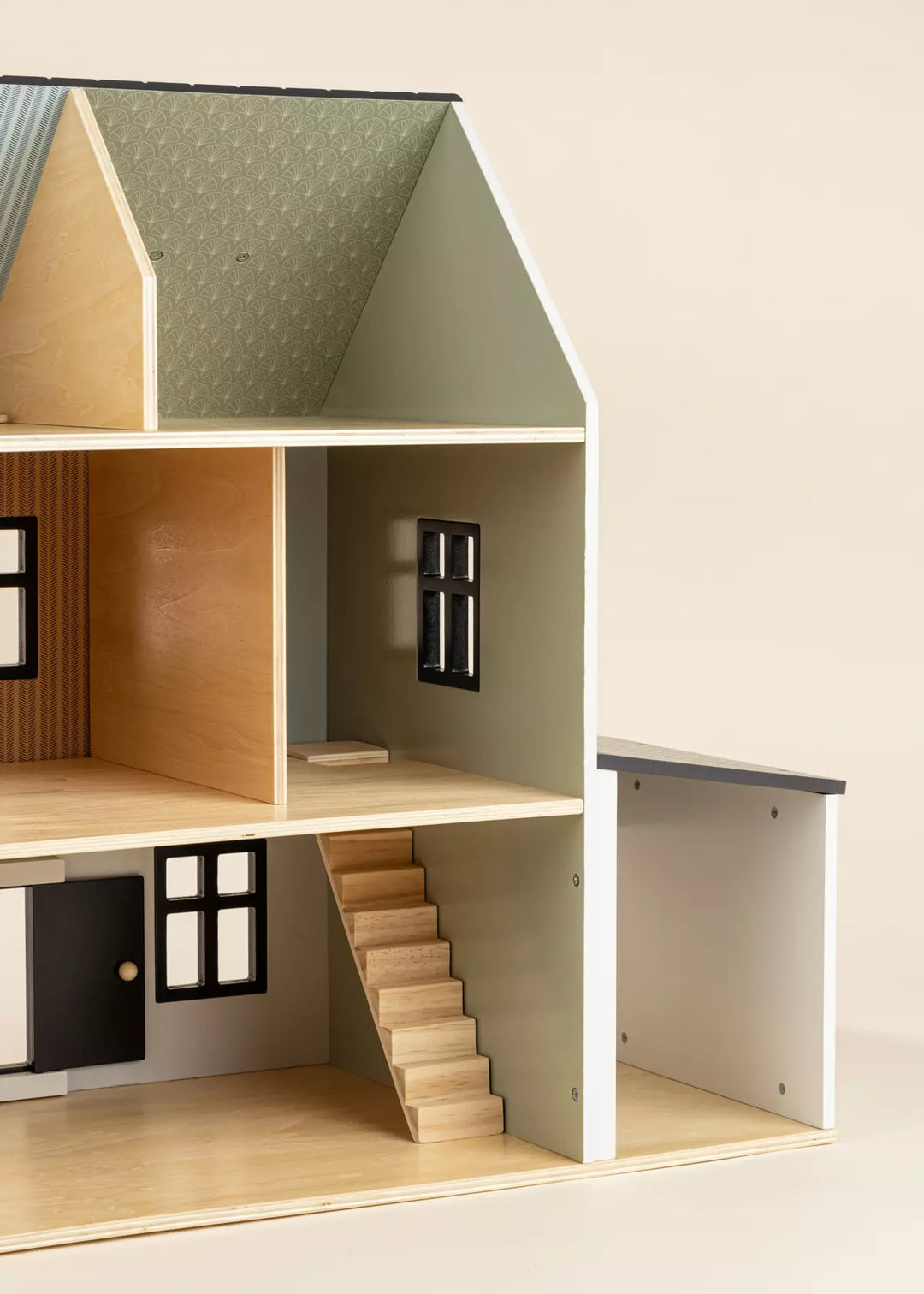 Made of top quality wood, the Doll House is a durable and safe toy that will accompany you for many years, in addition to being an eco-responsible choice. Its clean and fun look makes it an ideal item for a nice accent in the bedroom, or a must-have addition for the playroom.