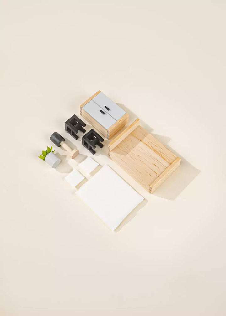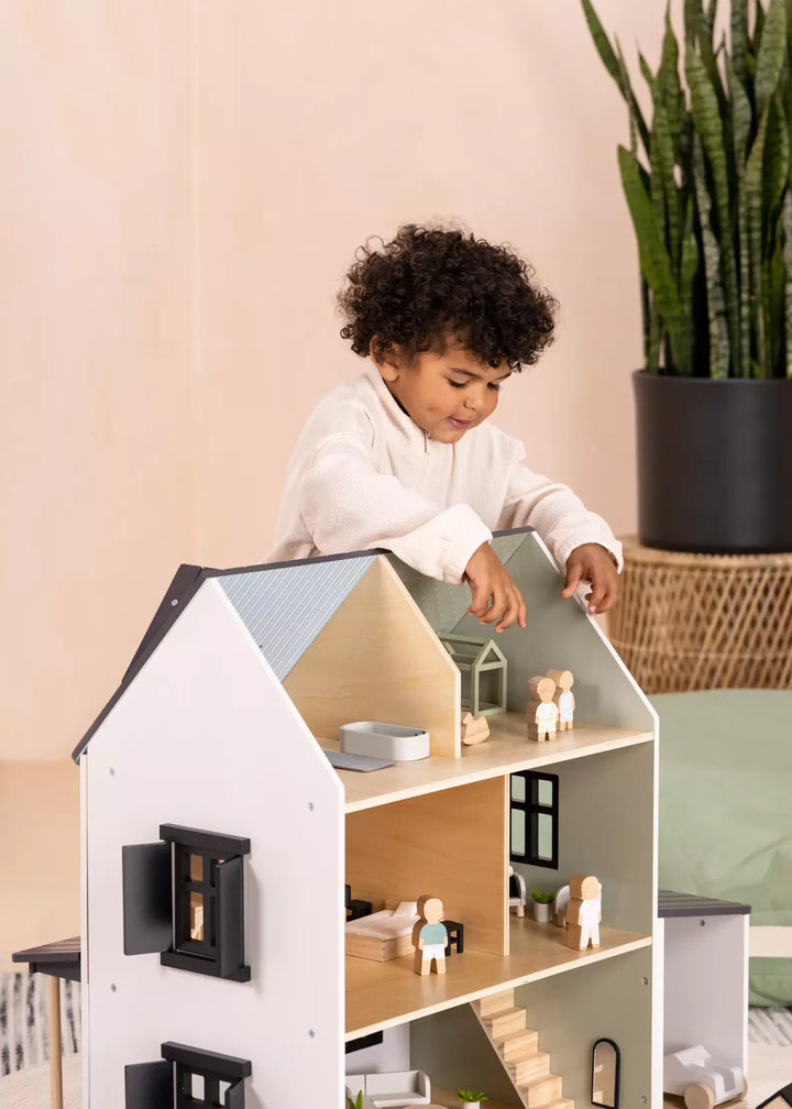 This Doll House set of furniture and accessories is all about creating a welcoming and warm space. Each item allows the child to arrange the space by giving free rein to their imagination.