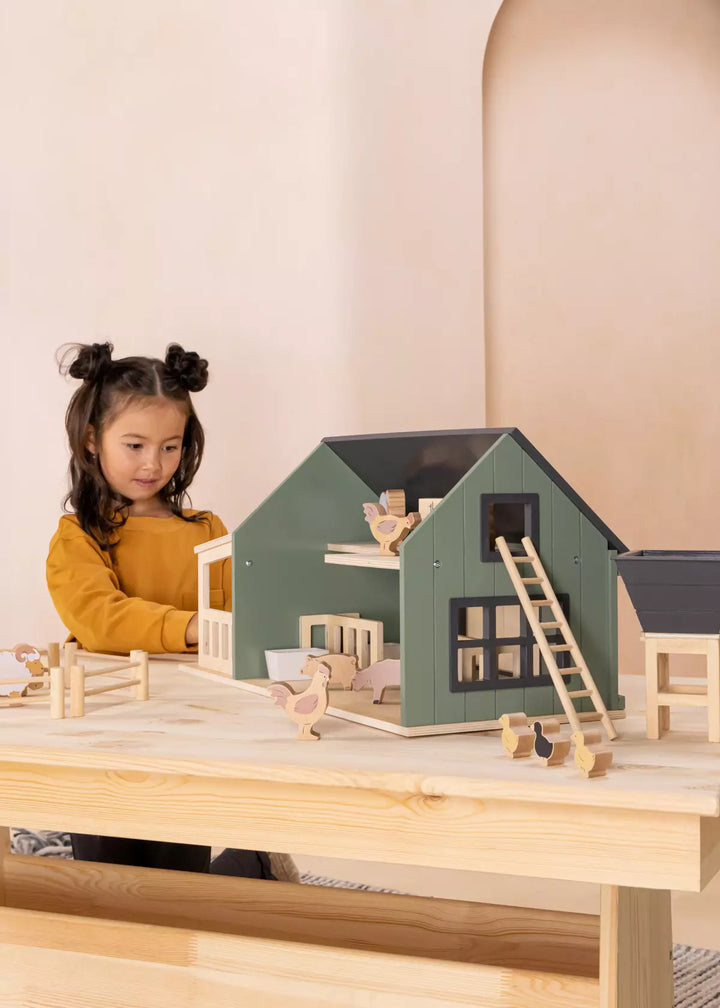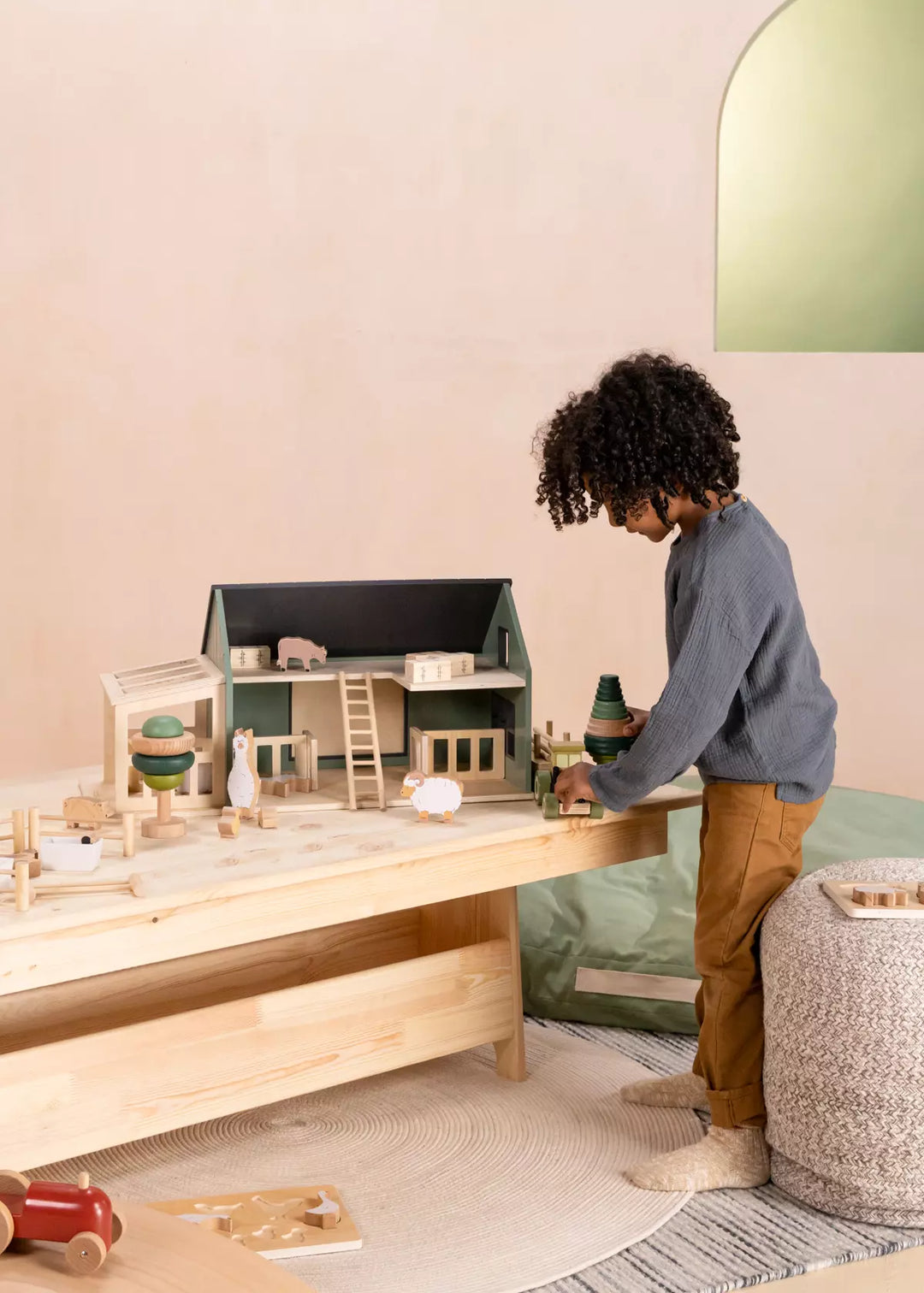 Made of premium quality wood, the barn is a durable and safe toy that will accompany your child for many years, in addition to being an eco-friendly choice. Its refined and fun look makes it an ideal item to add in the bedroom, or a great addition for the playroom.