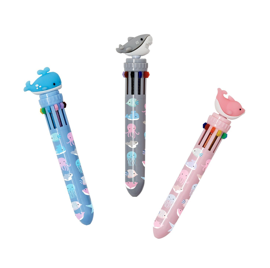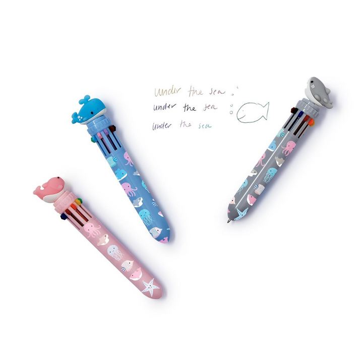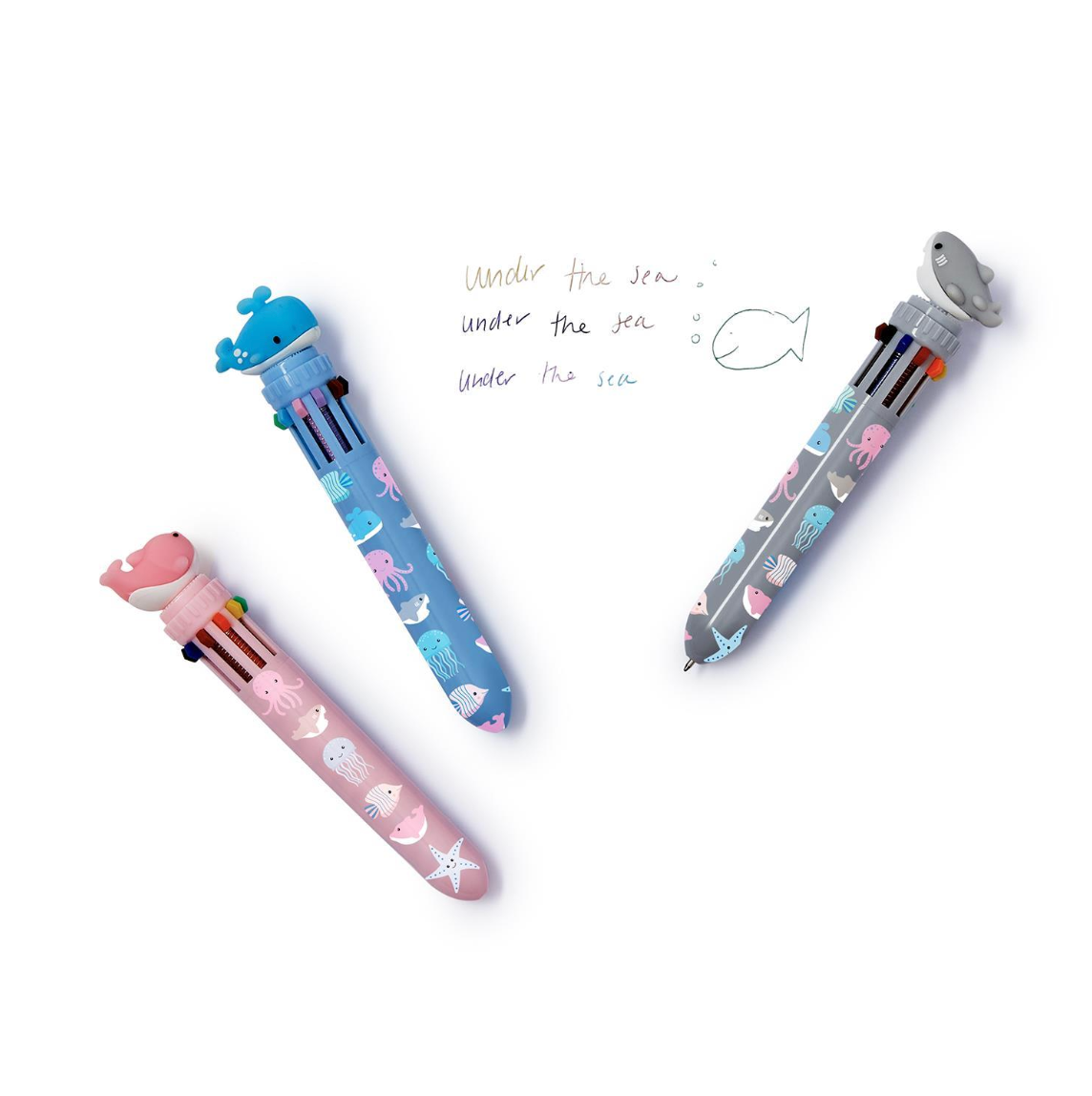 Dive into a world of color and creativity with our 10 color Sea Life pattern pen. Featuring black, blue, red, orange, yellow, green, turquoise, pink, purple and brown ink colors, this retractable pen makes it easy to switch from one color to another.