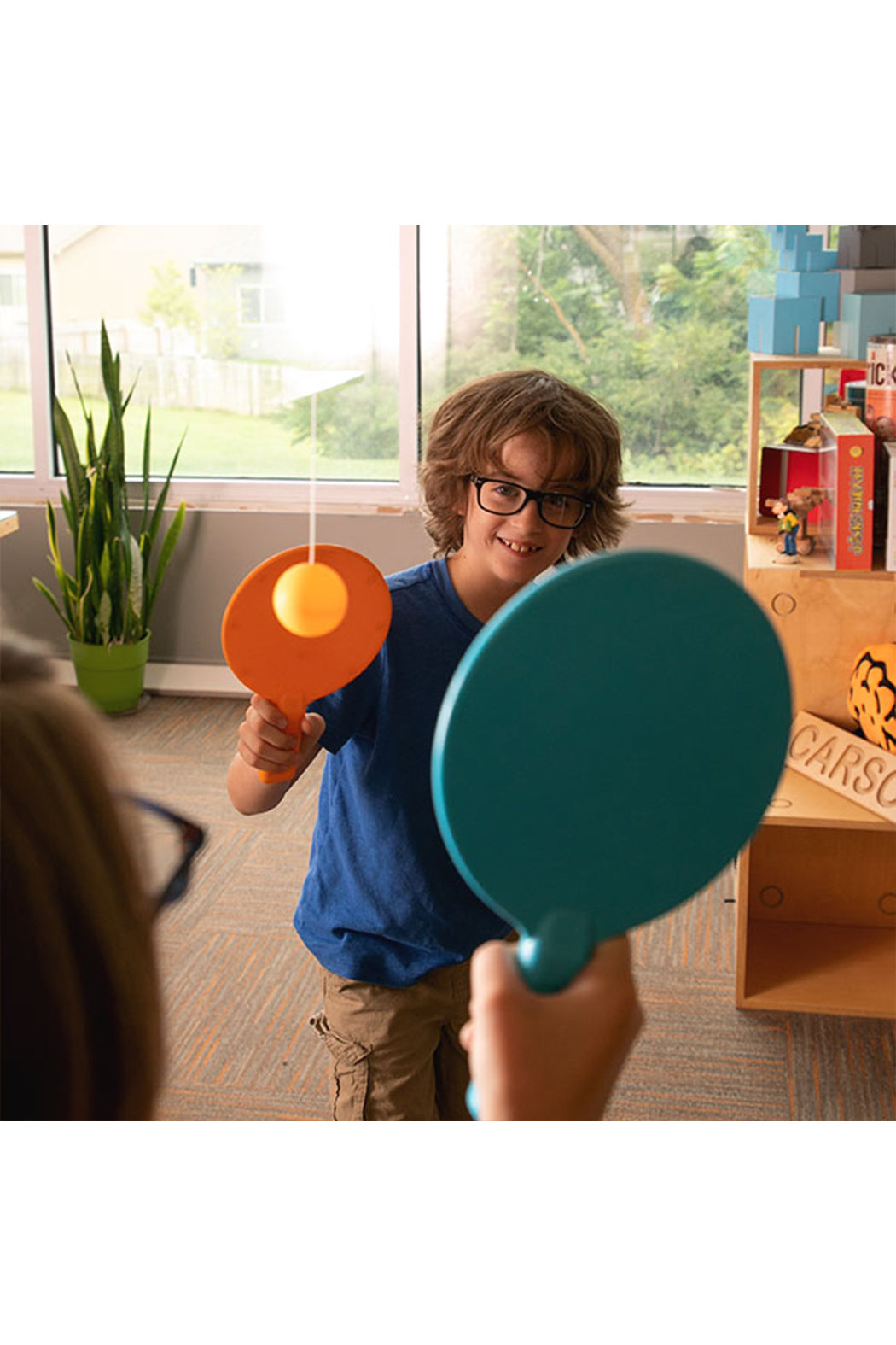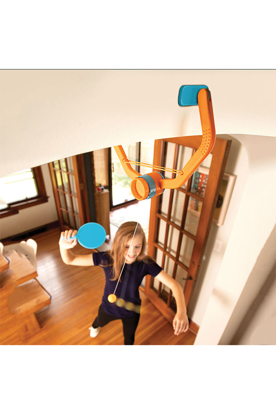 It's ping pong without the table! Attach the clamp to the top of any doorway, turn the dial to adjust the length of the string, and then serve up hours of active fun. Your goal is to hit the ball back to your opponent every time without missing - But more than a game, Door Pong is a fascinating, skill-strengthening activity to enjoy with a friend. It enhances hand-eye coordination, concentration, reflexes, cooperation, and more... Open the door to a truly ideal active-play delight with Door Pong! Door Pong Ping pong without the table! Encourages gross motor skills, coordination, concentration, cooperative play A delightfully fun activity for all ages Clamp opens to a max of 9 inches and attaches easily to any doorframe Turn the dial to adjust the string to your desired length Simple game play - Hit the ball back and forth without missing Play with a friend or solo Includes clamp with tethered ball, 2 paddles Based on the design of the 2017 Kidventor Competition winner Originally designed to help improve skills and coordination of a child with autism High quality design and materials - Lasting durability, exceptional gameplay