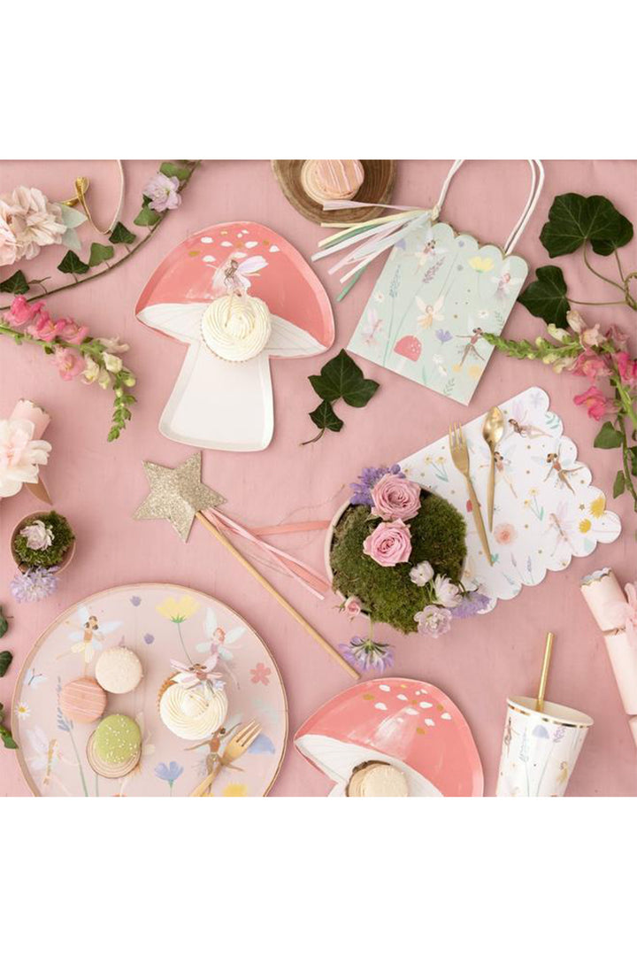 Party guests will be thrilled to receive a beautiful fairy gift bag - what a perfect way to end a fairy party! They are crafted with a stylish scallop edge and feature illustrations of dancing fairies, flowers and toadstools, and golden foil detail. The bags have twisted paper handles and gorgeous raffia tassels.
