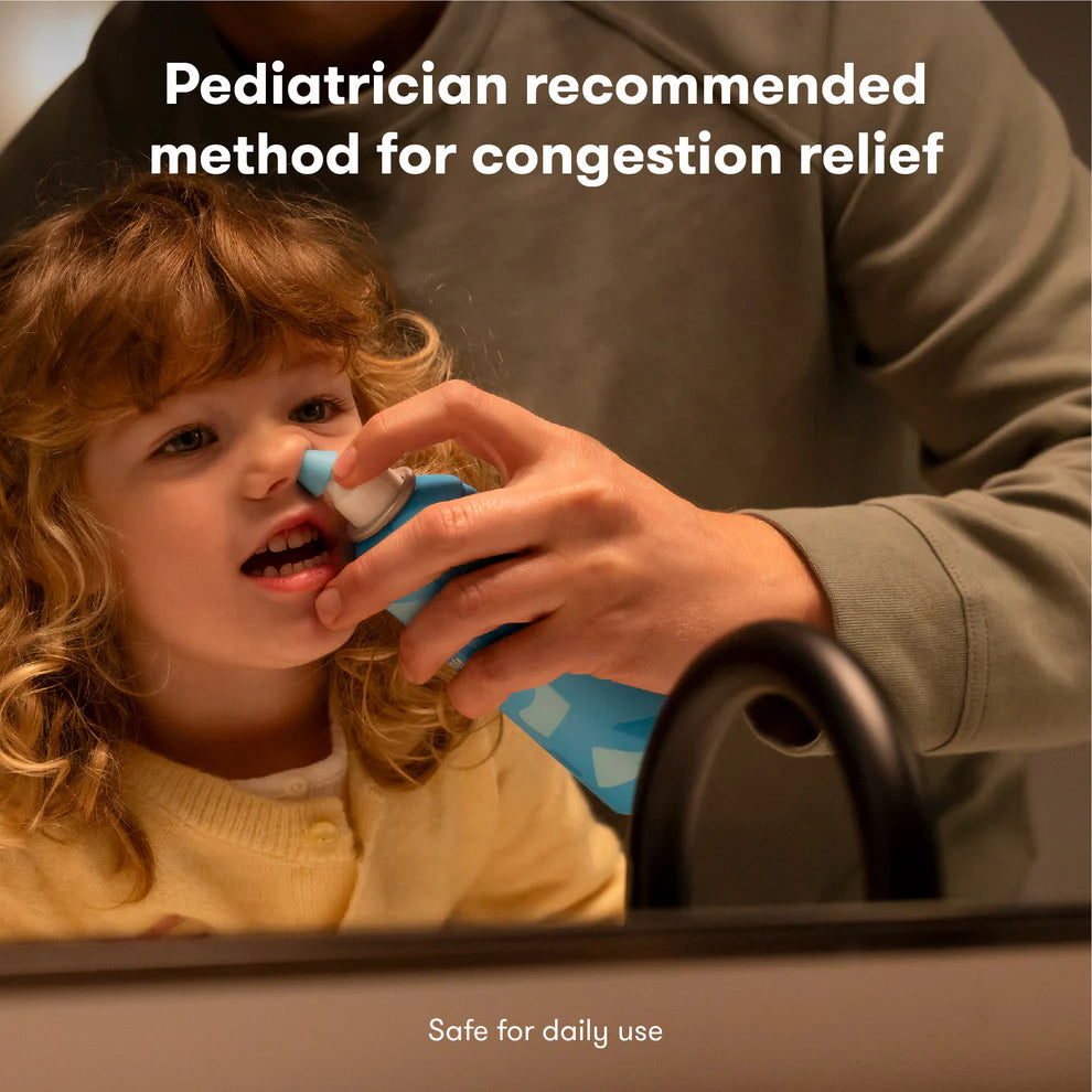 - USER FRIENDLY & CONVENIENT: With pre-mixed sterile saline and preset pressure, there's no guesswork involved in providing relief—just straightforward and effective congestion relief for your child