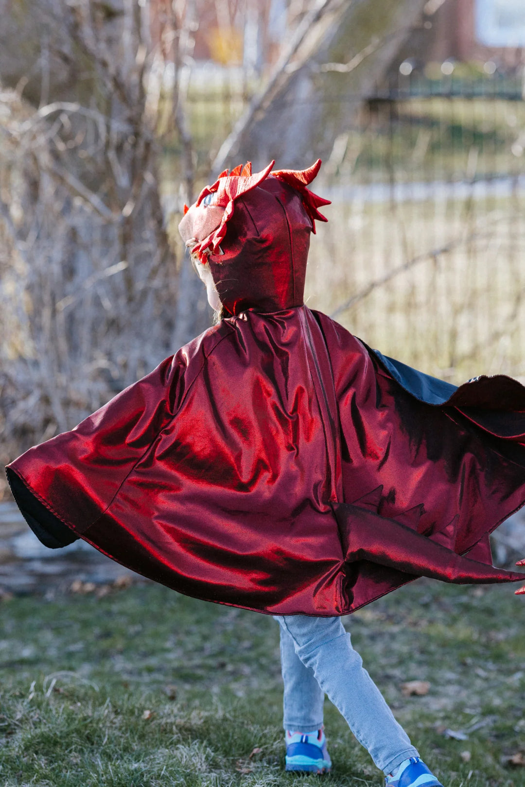 Introducing the most magical & majestic cape to ever grace your wardrobe: the Ruby Metallic Dragon Cape! This cape is not your ordinary piece of clothing; it's the ultimate costume for anyone who wants to add a touch of mythical magic to their wardrobe!