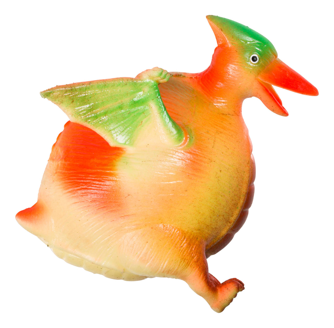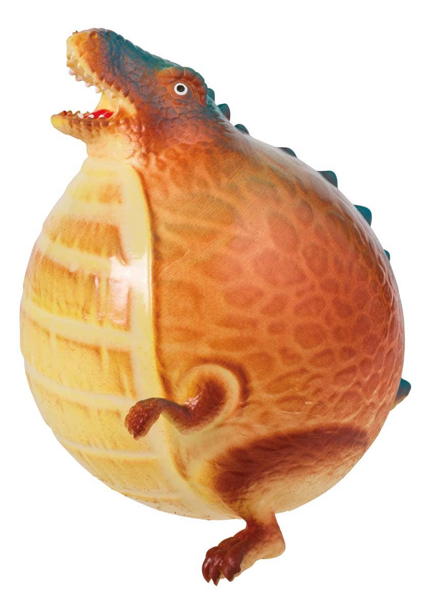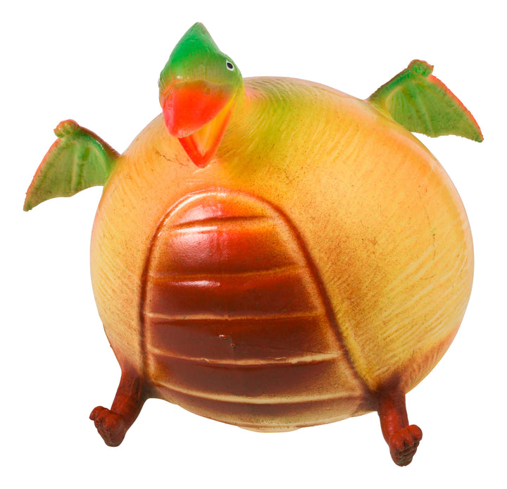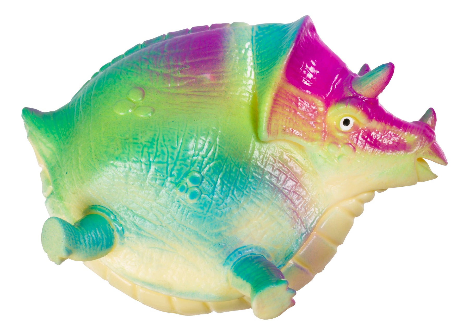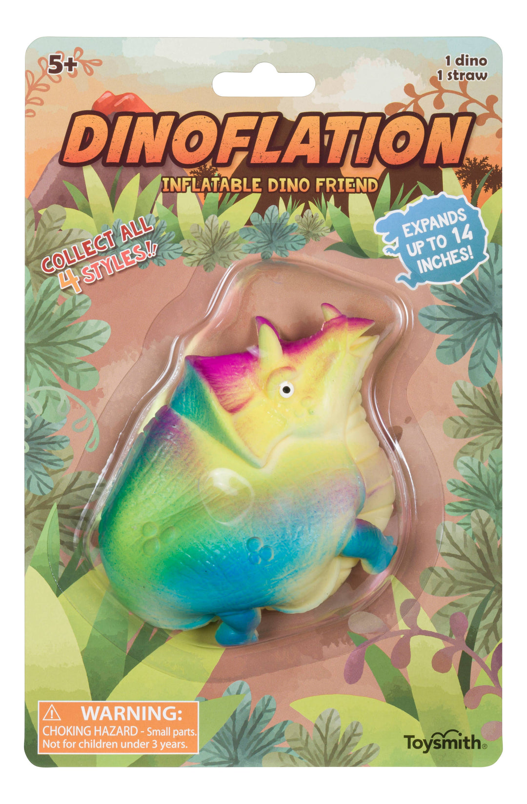 From Toysmith comes the creative Dinoflation Inflatable Dinosaur toy that anyone will laugh at. Each peggable packet includes 1 inflatable dinosaur and 1 straw. Choose from 4 assorted dinosaurs with wacky round middles. Inflate them up to 14 inches, then bounce and toss them around. These cartoonish dinosaurs are brightly colored with wide cartoon eyes, stubby feet, a tiny tail, and an excessively large middle. Some may also have fanned heads, spiky backs, or wings. Choose from a T-rex, Triceratops, brontosaurus, or pterodactyl. Dinoflation toys can be inflated, deflated, and re-inflated repeatedly.
