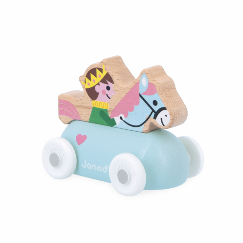 "Off to the jousting tournament!" This little wooden vehicle is suitable for children aged 12 months and over. On his rolling horse, the prince of the Enchanted Kingdom travels the vast lands at top speed! Its shape has been specially designed for little ones, who can easily hold it by the top to make it roll. The vehicles are perfect for inventing stories and developing the imagination! Babies first have fun rolling them around, then older children tell all kinds of adventures, developing their vocabulary and creativity. This little Janod car is part of our Cross Roads collection: a series of playmats with circuits, made even more fun when complemented by our cube sets and small wooden vehicles. The prince car is particularly suited to the Enchanted Kingdom playmat, but also works well with other playmats in the range. It's made from wood from sustainably managed forests. "What if I challenged the princess to a race?"