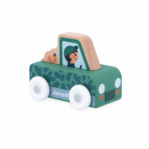 "How beautiful the mountains are!" This little wooden car is suitable for children aged 12 months and over. With his all-terrain car, the forest ranger ventures into the steepest parts of the valley! The shape has been specially designed for little hands, who can easily hold it by the top to roll it along. The vehicles are perfect for inventing stories and developing imagination! Babies first have fun rolling them around, then older children tell all kinds of adventures, developing their vocabulary and creativity. This little Janod car is part of our Cross Roads collection: a series of playmats with circuits, made even more fun when complemented by our cube sets and small wooden vehicles. The off-road car is particularly suited to the Mountain Valley playmat, but goes equally well with other mats in the range. It's made from wood from sustainably managed forests. "I know every nook and cranny of this forest like the back of my hand!"