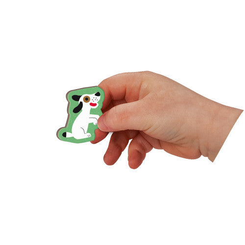 Magnetic educational game in cardboard on the princess theme. Composed of 55 magnets and 7 cards. Once the book is opened, the aim is to make on the stage the same scene as indicated on the card thanks to the magnets.