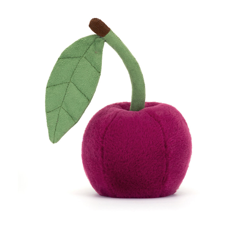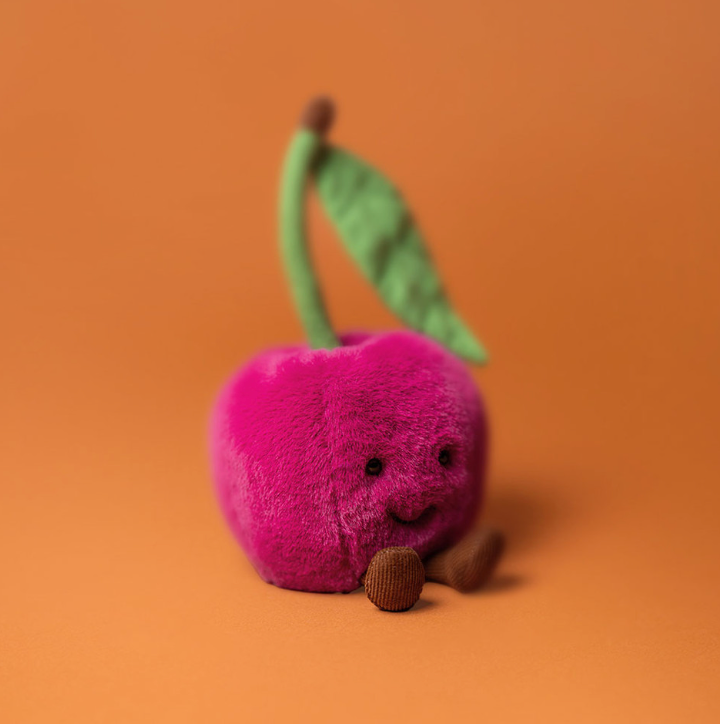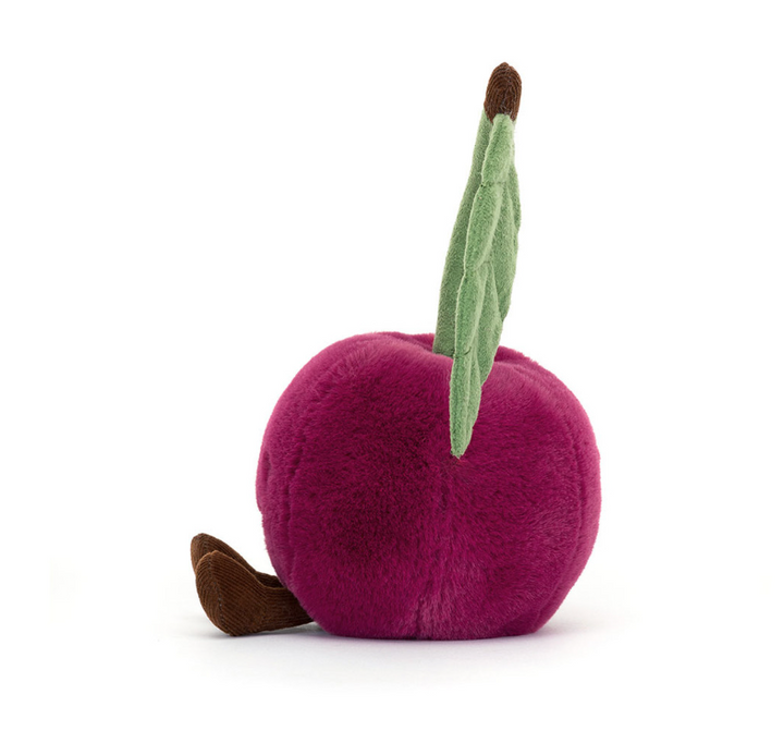Amuseables Cherry is a scrumptious pal with magenta fur and a friendly stitch smile. With cocoa cord boots, a two-tone stalk and a green embroidered suedette leaf, this cheeky berry brightens any desk.