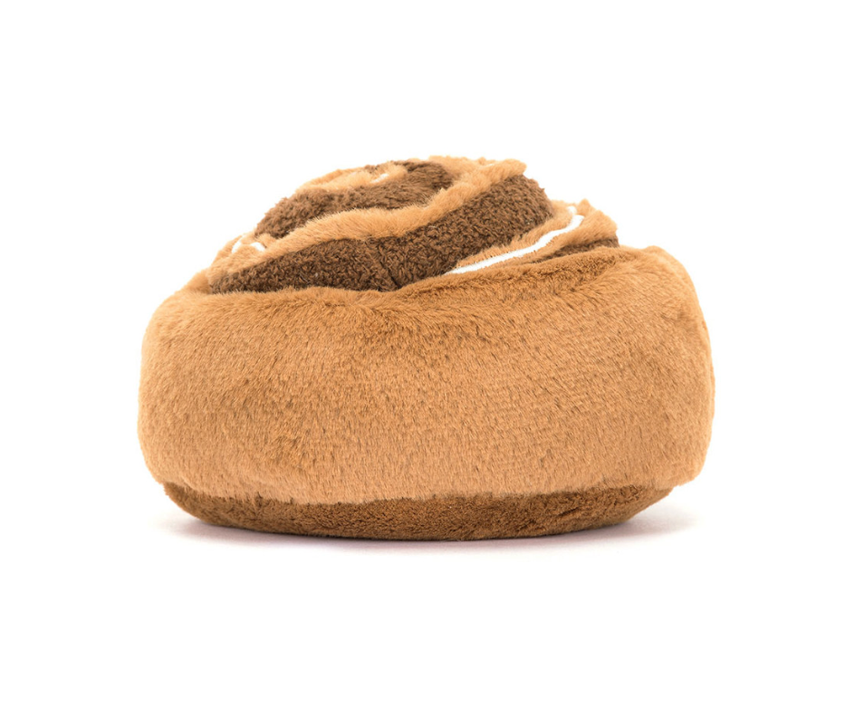 Amuseables Cinnamon Bun is the happiest sweet roll. Baked to perfection in golden brown fur, this cinnamon sweetie is rolled with a dark brown, textured filling, and drizzled with cream stitched icing. With fine cord legs and a big stitched smile, this cinnamon bun is the perfect foodie friend.