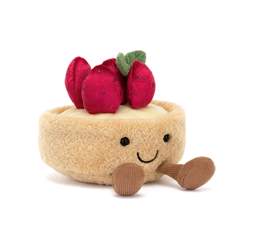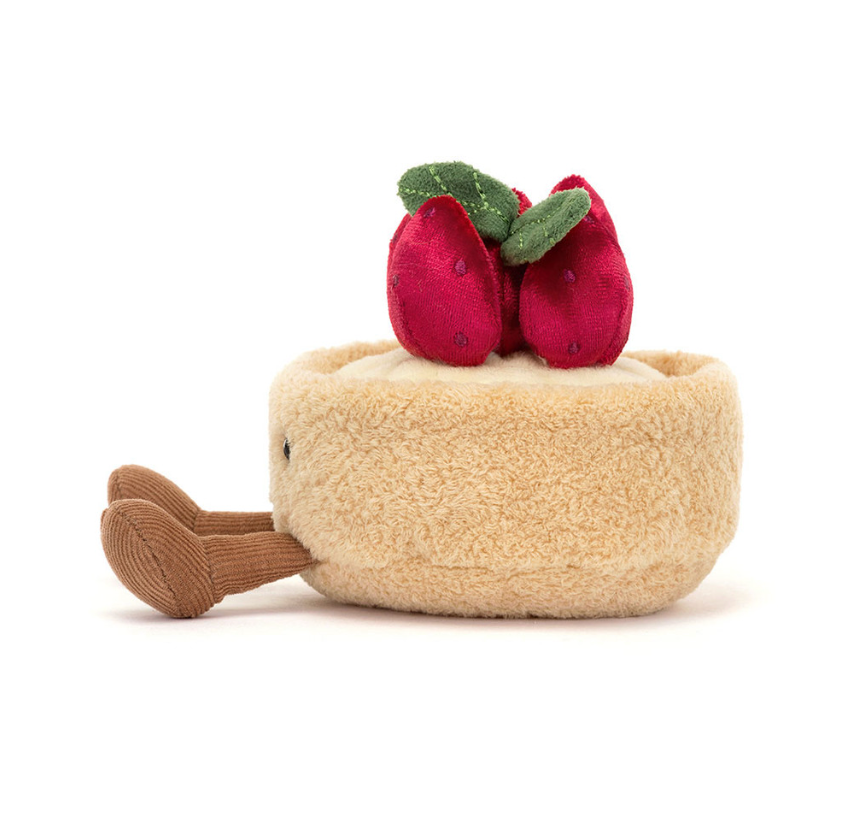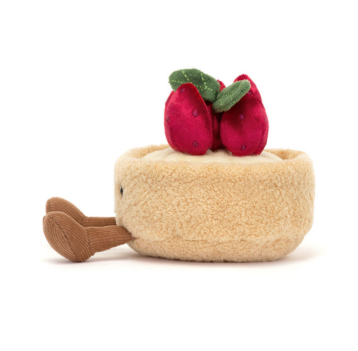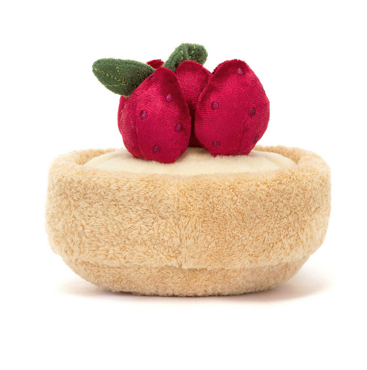 Amuseables Fleurette Tarte Aux Fraises is soft, sweet, and baked to perfection. A textured, golden pâte sucrée base is filled with a soft crème pâtissière. Decorated with a quartet of strawberries with stitched pips and a duo of leaves, Fleurette adds a little sweetness to every day.