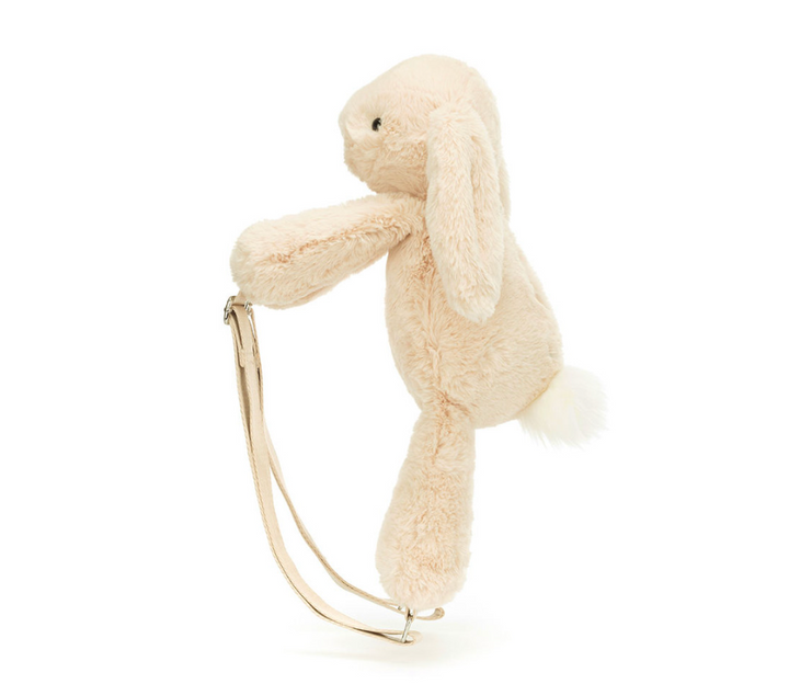 Wherever you bounce, take everything you need in the Smudge Rabbit Backpack. Soothing and soft in oatmeal fur, with a snowy bobtail and long lop-ears, this fully-lined bag has a silver zipper and Jellycat tag. With adjustable straps in strong beige webbing, this bunny's a travel essential.