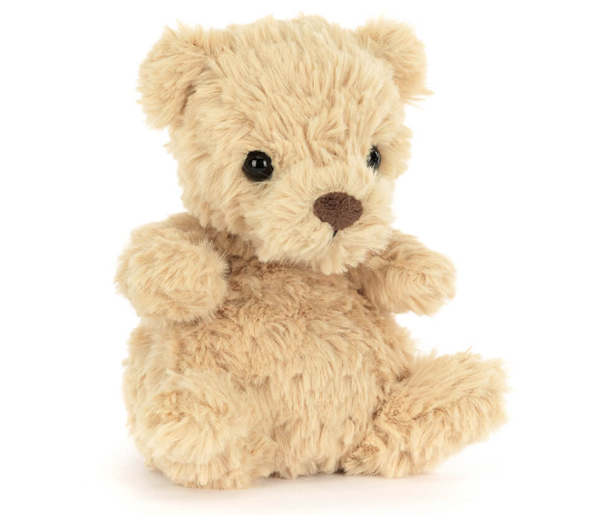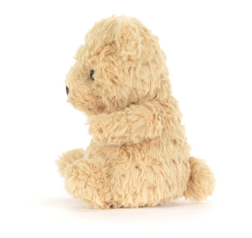 Yummy Bear is pocket perfection with silky, tufted honey fur. This gentle bear has a slumped, relaxed pose, cocoa nose and embroidered eyes. A gorgeous gift for tiny paws.