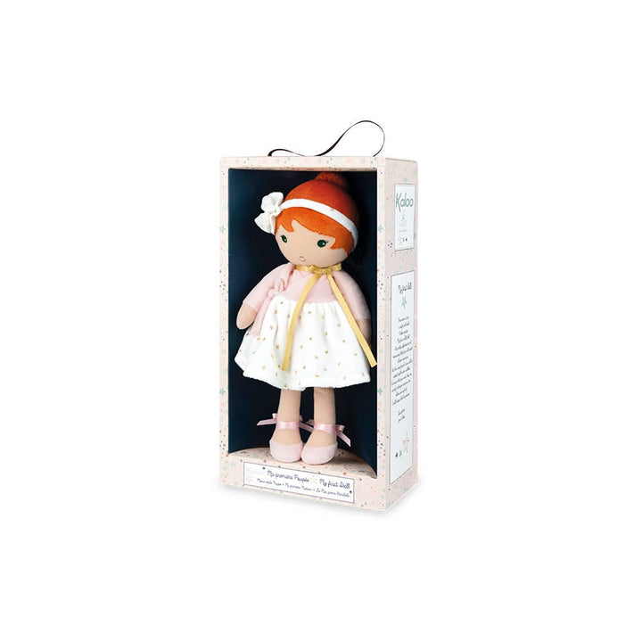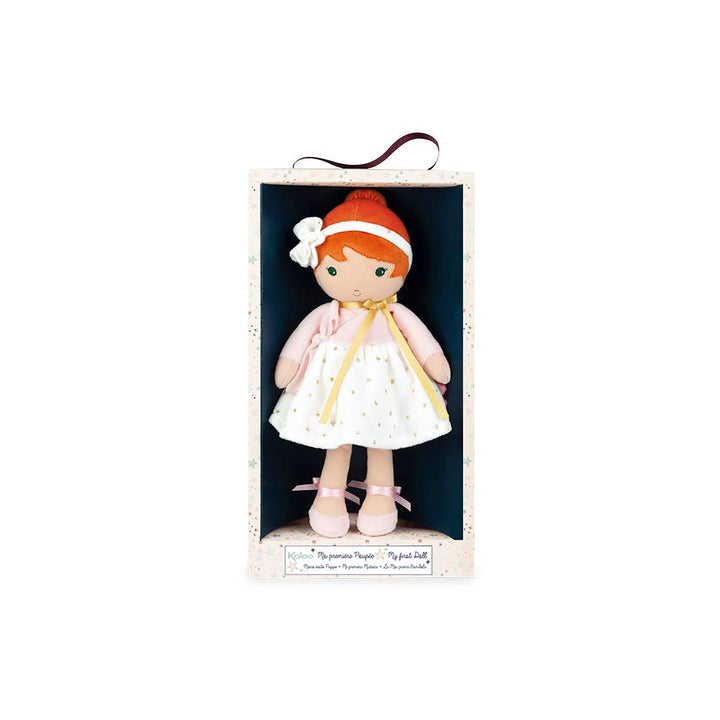 Explore the classical dancer who is the stuff of little ballet fans' dreams! Dressed in a powder pink wrap-over top embellished with a golden scarf and an oh-so-soft champagne-coloured star print skirt, Valentine reveals delicate, refined style. Her red hair distinguishes her from other Tendresse dolls. Machine washable.