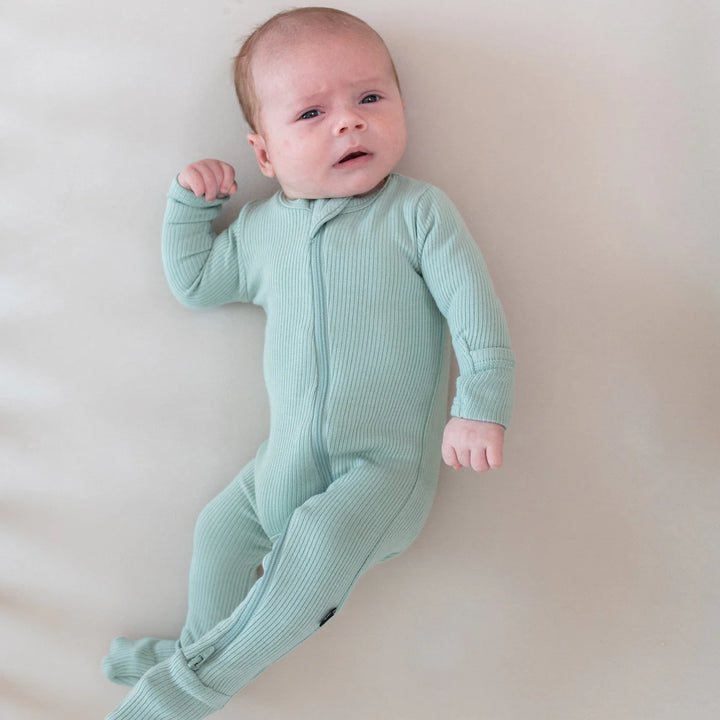 Crafted from high-quality rayon made from bamboo, our footie pajamas offer a soft, hypoallergenic touch that can even help reduce symptoms of eczema. With just a hint of natural flair, our sage color is the perfect pop of green to freshen up any nursery aesthetic. Our ribbed zipper footie is available in sizes from newborn all the way up to 18-24 months, so its charm and functionality will truly last.