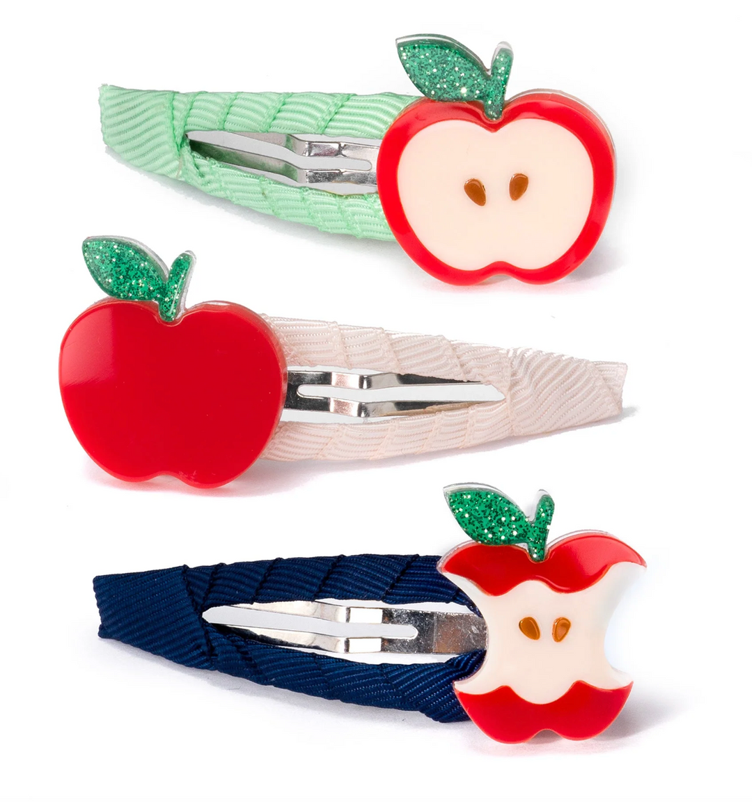 Lilies & Roses Apple Bite Trio Fabric Covered Snap Clips