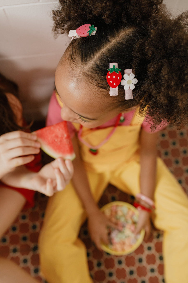 Add a sweet touch to any outfit with this charming headband, featuring vibrant strawberries and delicate daisies. Handmade from durable acrylic, it's lightweight, comfortable, and perfect for spring, summer, and everyday fun. Whether for a party, picnic, or playdate, this fruity accessory is a must-have! Shop now for a berry-sweet look!Â