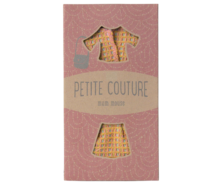 If you need a new set of clothes for your mouse this set will be a good choice. The suit is a short jacket and skirt. In the box you will find a real lady bag as well.