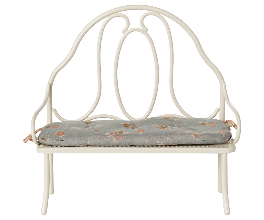 The beautiful vintage bench comes with a soft cushion to secure a comfortable seat. The bench is perfect for a short rest and fits perfectly for the bunny and rabbit size 1 and 2.