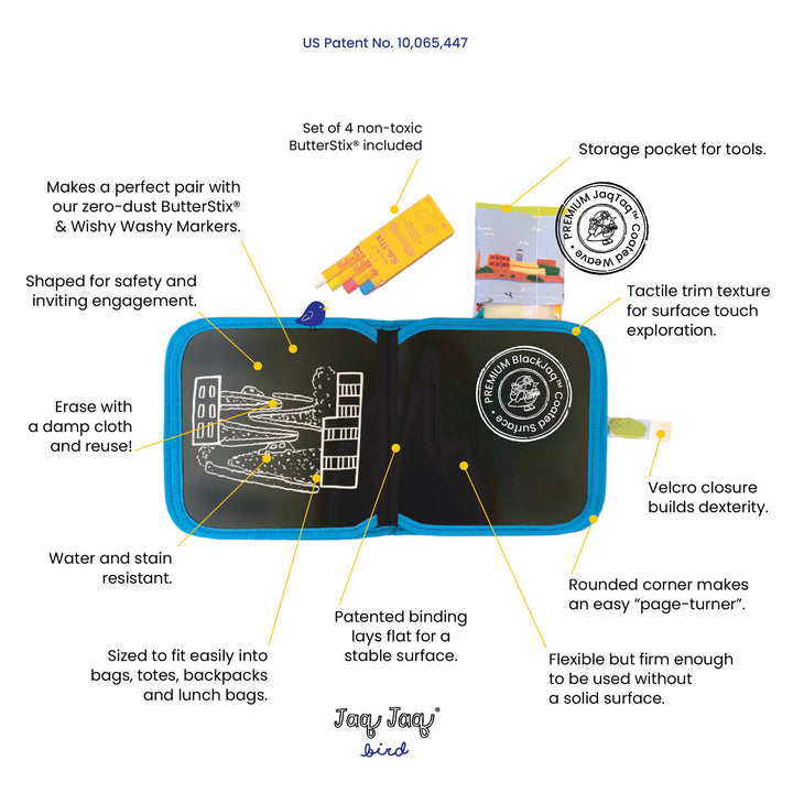 Please always test the erasability of ButterStix® when applying to any non-Jaq Jaq Bird® surface. Do not leave it on surfaces for an extended period of time.