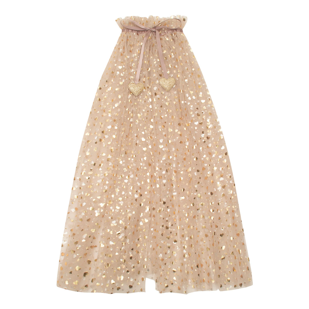 • Layers of soft tulle embellished with metallic gold hearts