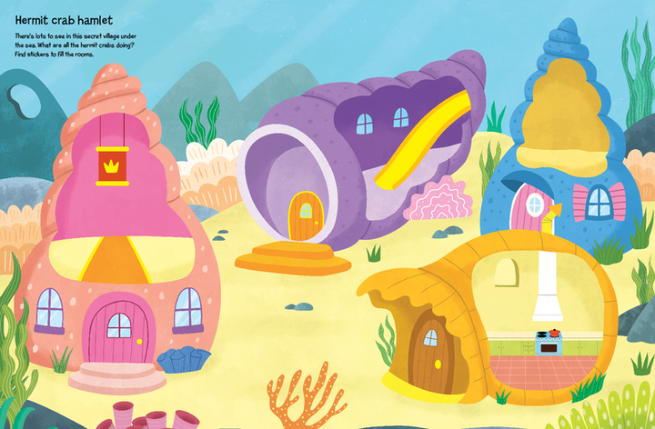 Each book boasts over 500 stickers for decorating 12 brightly illustrated scenes in any way you like. You can make up your own stories about them too! A bevy of buildings beneath the sea await you ... fill them with magical sea creatures and more!