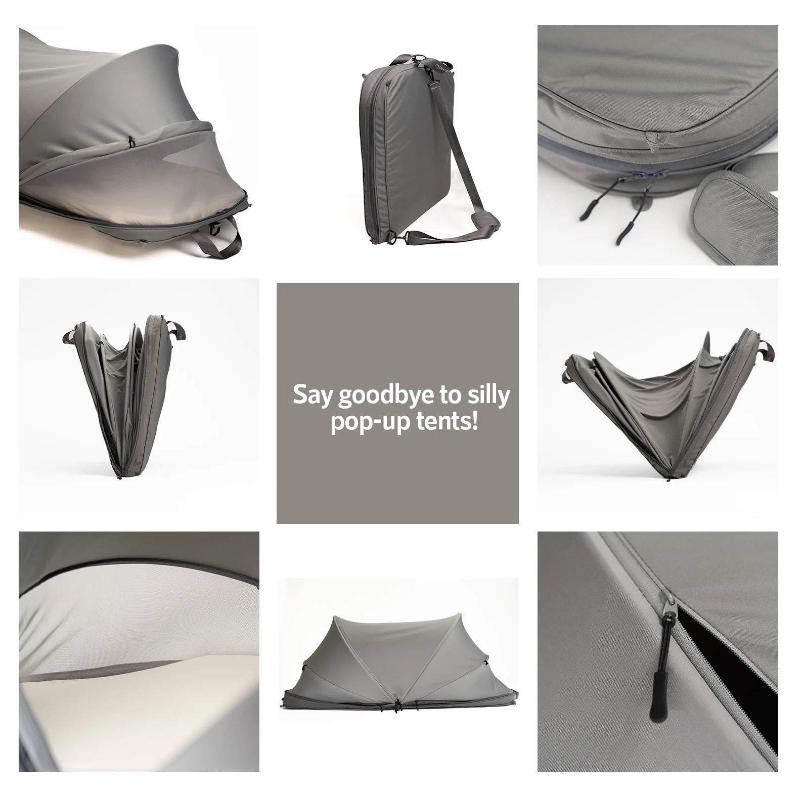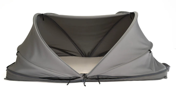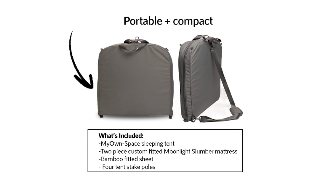 MyOwn-Space is the first-of-its-kind, innovative folding 'tent' that can be opened and set up in one action. Set up is a breeze with our accordion-style opening, allowing the convenience of setting up and closing with only one hand and one movement. Our fast open and close system takes the confusion and frustration away from more ordinary 'pop-up' tents. Including a MOONLIGHT SLUMBER TM, made in USA mattress, designed to secure easily and fasten to the base. Giving the ultimate luxury of a world-renowned, top-quality, child sleeping mattress that can be taken anywhere.