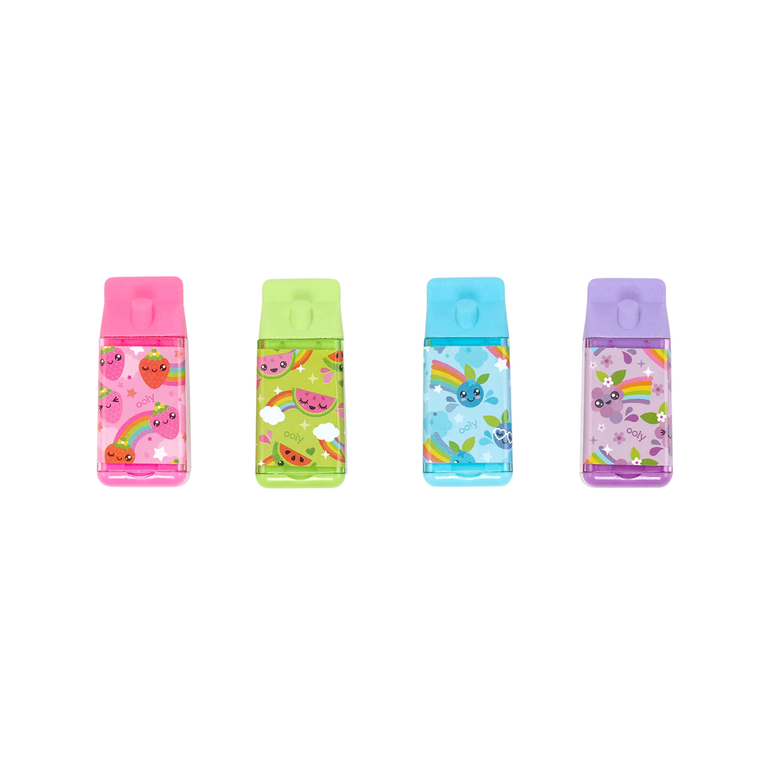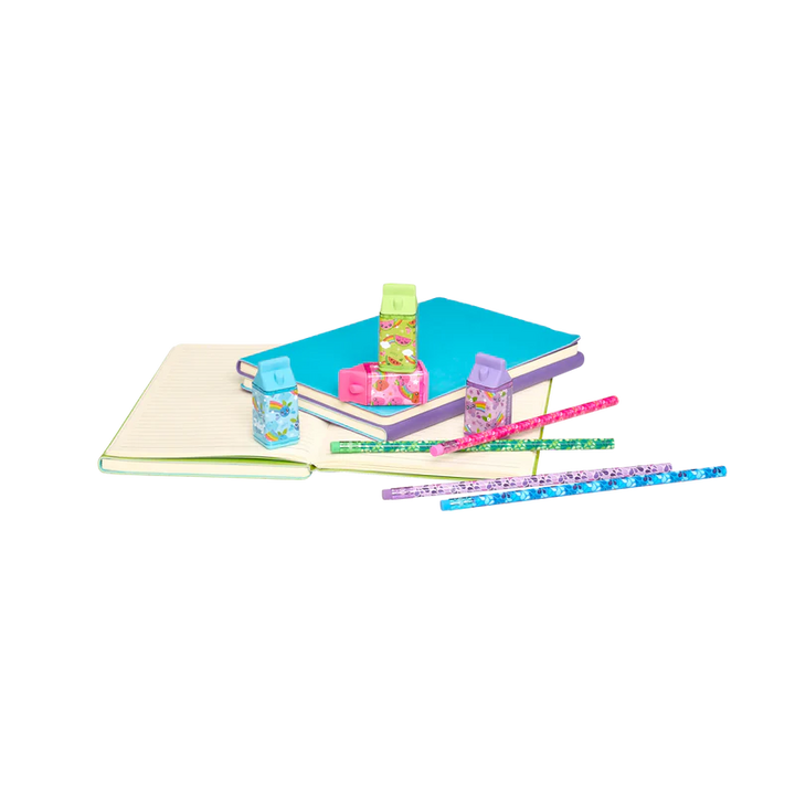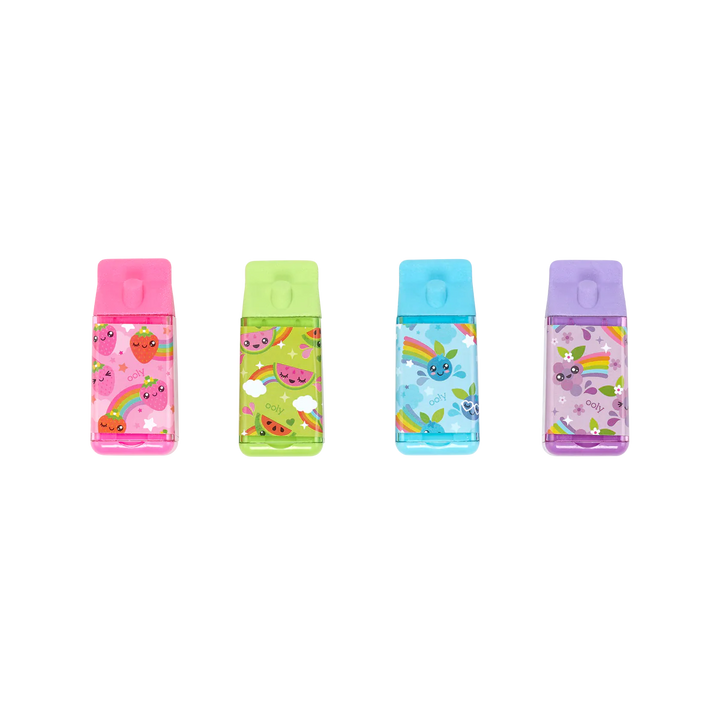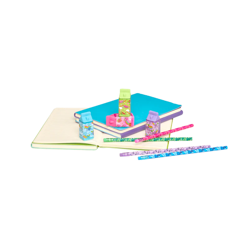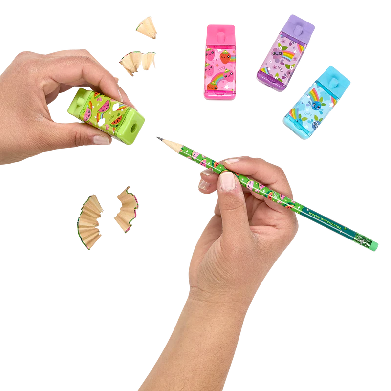Choose from strawberry, watermelon, blueberry or berry scented juicy box shaped eraser or use a new cute eraser everyday. And to keep your pencils at their best, use the built in sharpener to get your point across! Lil’ Juicy Box Scented Erasers and Sharpener will add smiles to your face.