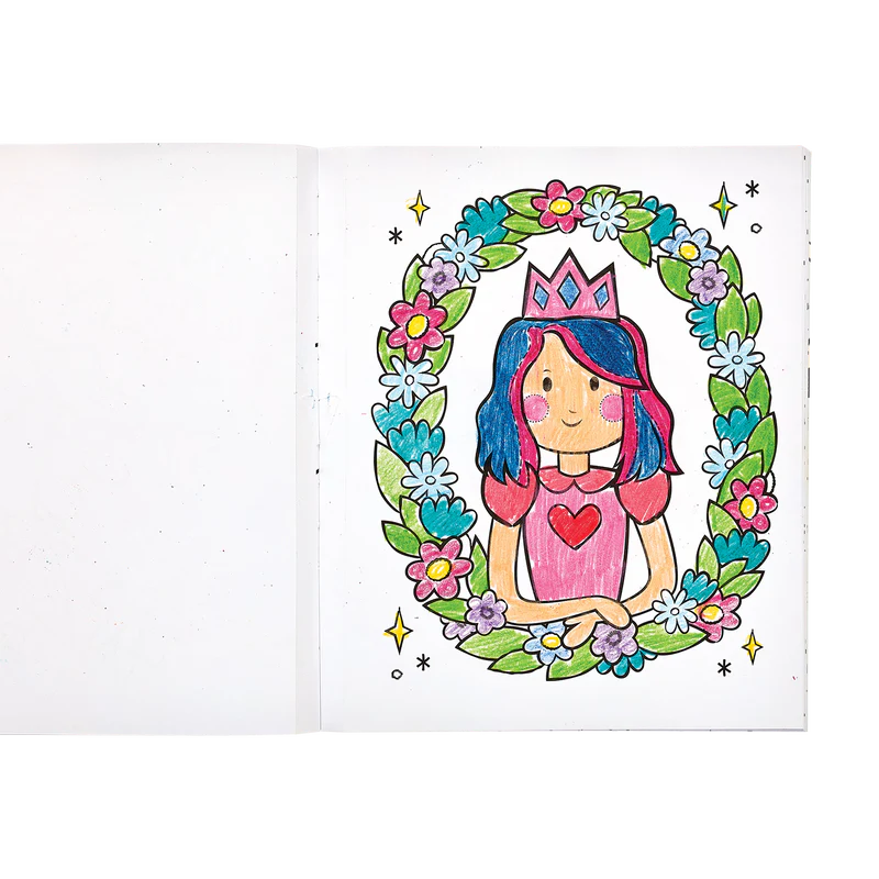 Coloring magic happens when Princesses and Fairies abound. A 31 page coloring book filled with fantastic fairies and enchanting Princesses will create hours of coloring fun. Add vibrant color and extra details with Stampables Double-ended markers; one end is a brush tip, the other are cute stamps.