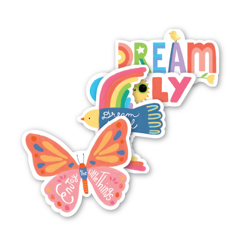 We could all use a reminder sometimes to focus on enjoying life and to keep dreaming! That’s what makes these waterproof vinyl stickers so special. Designed in a gorgeous rainbow of colors, these four inspirational stickers can be placed on accessories like laptops, water bottles, lunch boxes, and dream journals - any place that’s regularly visible, so we remember to be grateful for what we have and to keep striving toward our goals! These pretty stickers also make a sweet gift for kids on the cusp of new adventures, such as starting a new school, having a big birthday, or beginning college!