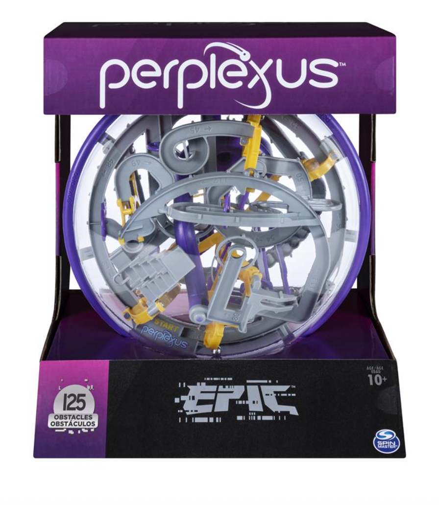 Put your skills to the test with Perplexus Epic! Do you have what it takes to make it through this thrilling 3D maze of 125 challenging obstacles? Flip, twist and spin Perplexus Epic 360 degrees to navigate the ball along the numbered track. Maneuver tricky obstacles like the serpentine, launch ramp and Escher`s stairs without falling off the track! If your ball falls, head back to the start and try again. It`s an intense, bendy challenge you won`t be able to put down! With multiple levels of difficulty to master, keep the ball rolling with Perplexus Rebel and Perplexus Beast (each sold separately). Master the challenge of Perplexus Epic!