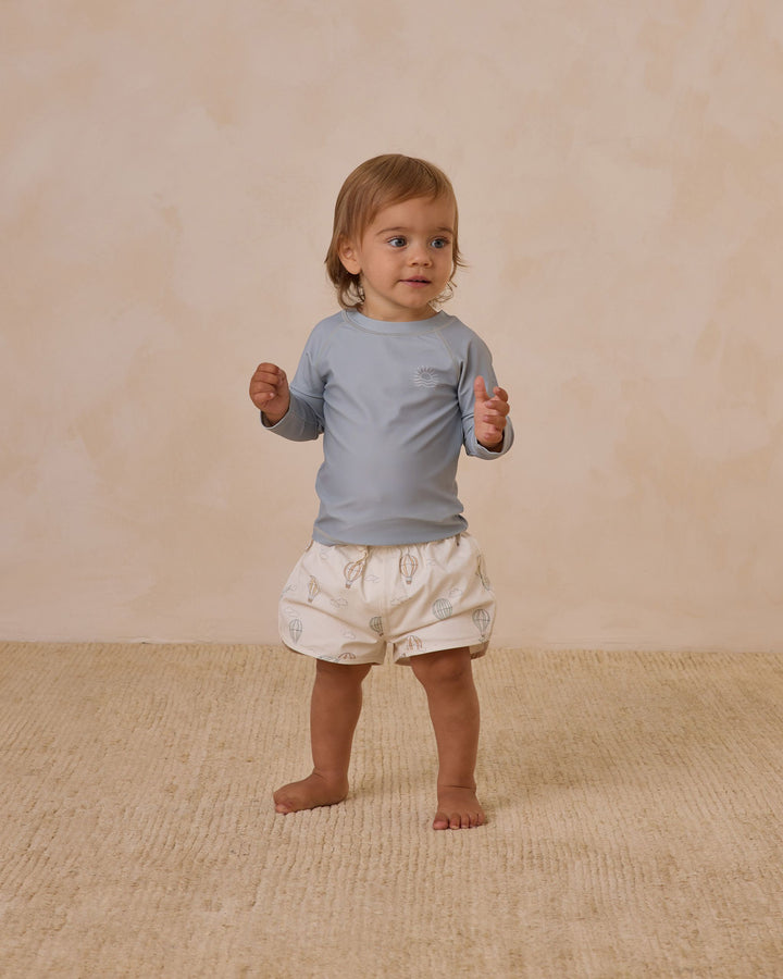 This rashguard swim top will keep your little one protected from the sun in style. Featuring long sleeves in an extra stretchy and soft fabric. Coordinates with our Boys Swim Short.
