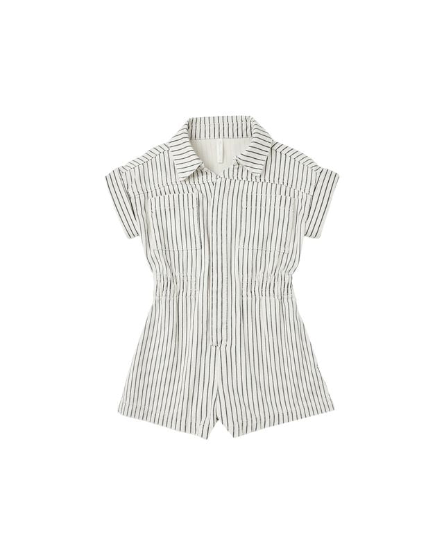 Rylee + Cru Utility Romper - Navy Pinstripe