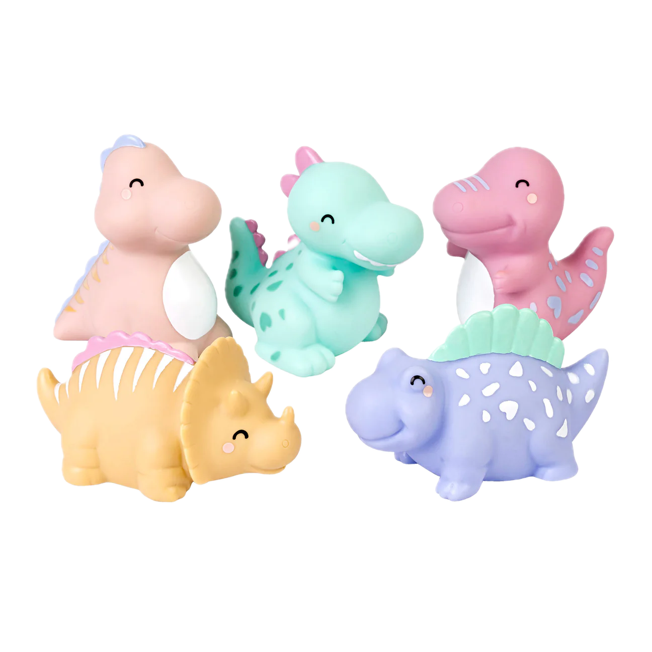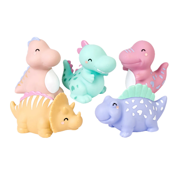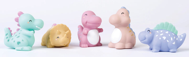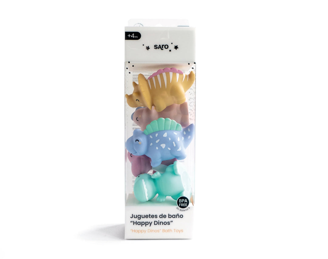 1, 2, 3, 4... Time to immerse yourself in the fun! It’s spa time for your little one and you cannot miss these dinosaurs. With them bath time will become the most joyful and fun time of the day. A must-have set to play daily! . Their flashy colors, soft touch and funny design will turn them into the favorite toy of your little one when bathing. · The smaller hands will grab it easily while he enjoys its fun design. · Safety and health come first, so these toys have no holes, thus preventing the entry of water and the proliferation of bacteria. No holes. , so you will find no mould inside! · If the first teeth have turned your little one into a vampire... Don’t worry! They can nibble them without problem. Without Bisphenol-A, phthalates, or any other toxic material so you can touch, bite and suck it without any risk. Warning: The items in the package must be removed by an adult before giving the toy to the child. Before each use inspect the product. Dispose of at first sign of deterioration or damage