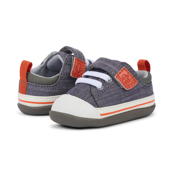 Watch his world expand step by step in the Stevie First Walker. Classic gray denim, eco-friendly recycled materials and a flexible rubber outsole combine to create a lightweight, comfy pair perfect for his budding adventures.