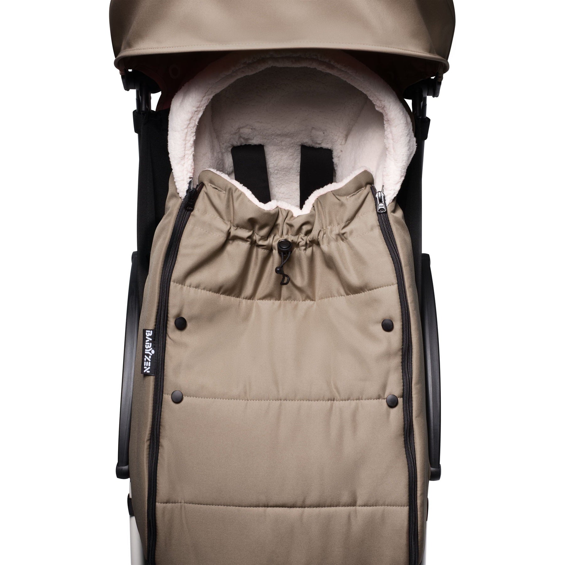 Thanks to its sherpa lining, the footmuff offers optimal protection. In very cold weather, the fleece hood with drawstring keeps your baby even warmer. To adapt to all seasons, the hood is reversible and the upper part of the footmuff is fully detachable.