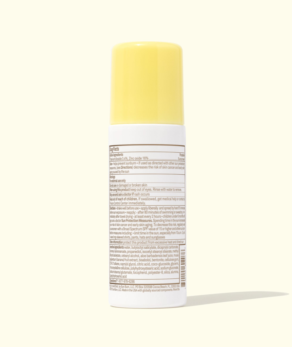 Active Ingredients: Titanium Dioxide β 3.4%, Zinc Oxide - 15.7% Inactive Ingredients: water, butyloctyl salicylate, dicaprylyl carbonate, isononyl isononanoate, propanediol, isocetyl stearoyl stearate, methyl dihydroabietate, cetearyl alcohol, aloe barbadensis leaf juice, musa sapientum (banana) fruit extract, bisabolol, bentonite, cellulose gum, C18-21 alkane, caprylyl glycol, citric acid, coco-glucoside, glycerin, microcrystalline cellulose, polyhydroxystearic acid, sodium gluconate, sodium stearoyl glutamate, tocopherol, polyester-8, silica, alumina, caprylhydroxamic acid
