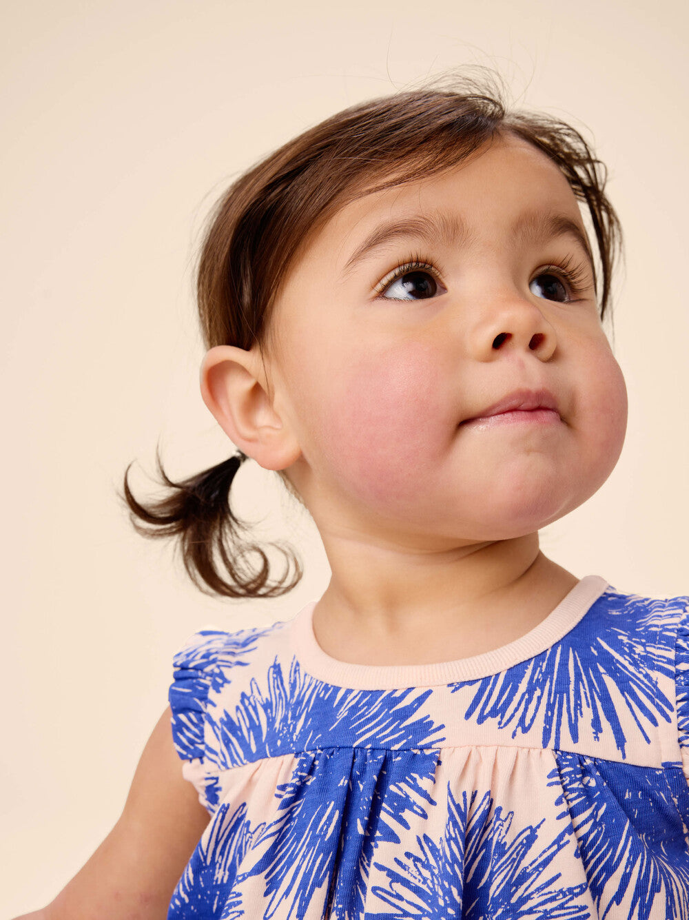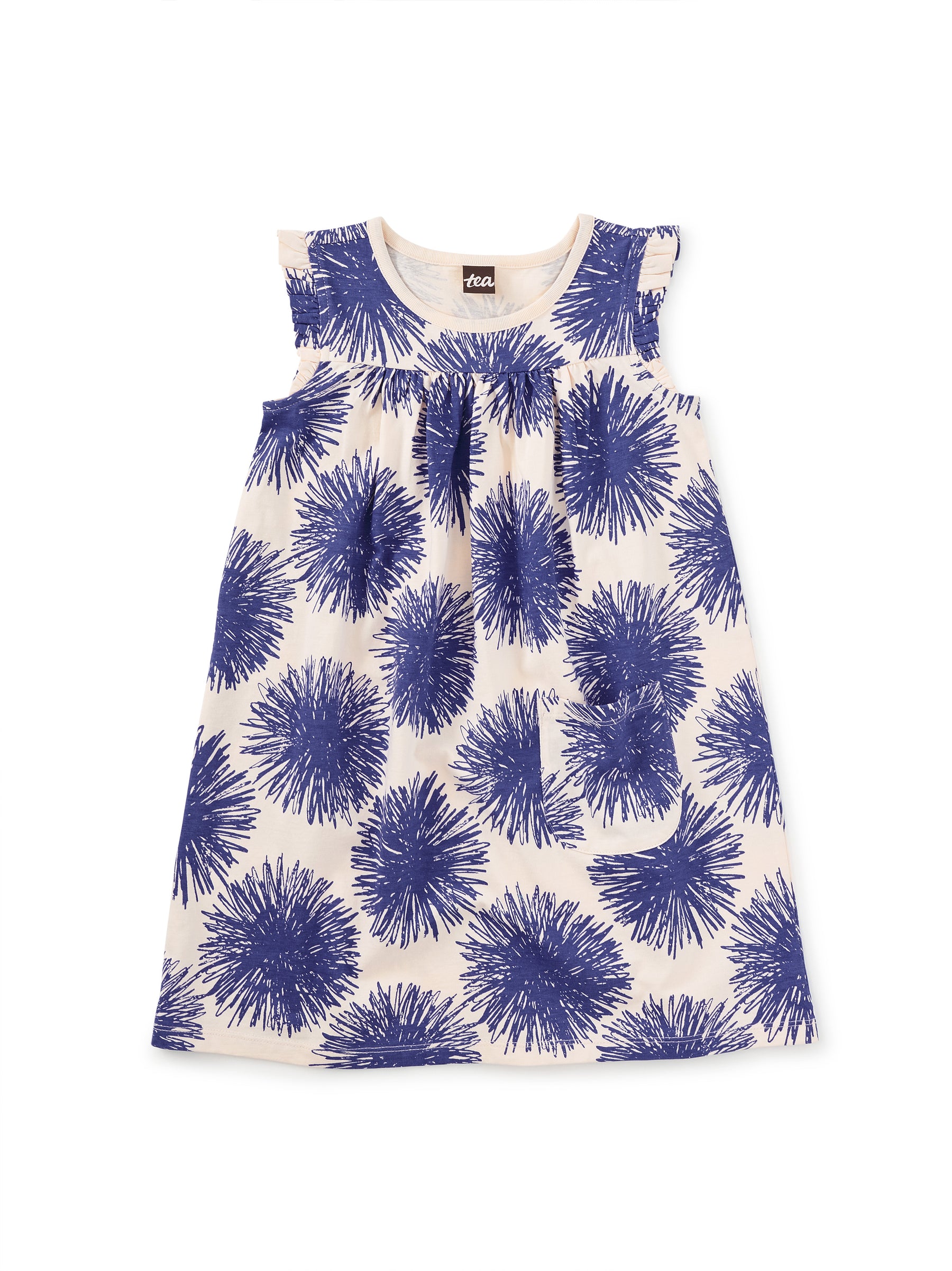 Inspired by our travels around the world, our designers created this original print of lush florals. The Mighty Mini is a customer-favorite thanks to its ease-of-wear and sweet styling details like ruffle sleeve sleeves and cute patch pocket. Pairs perfectly with leggings for cooler weather, and bare legs later. Crafted from 100% soft cotton jersey. Below mid-thigh length.