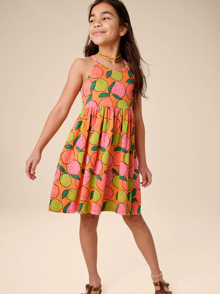A new spin on twirl-worthy style! With a full skirt, v-neckline, and sleeveless racerback design, this dress is made for movement. Crafted from 100% cotton jersey, it's soft, breathable, and perfect for warm-weather play. On-seam pockets add extra functionality, while the below mid-thigh length ensures a comfy, breezy fit.
