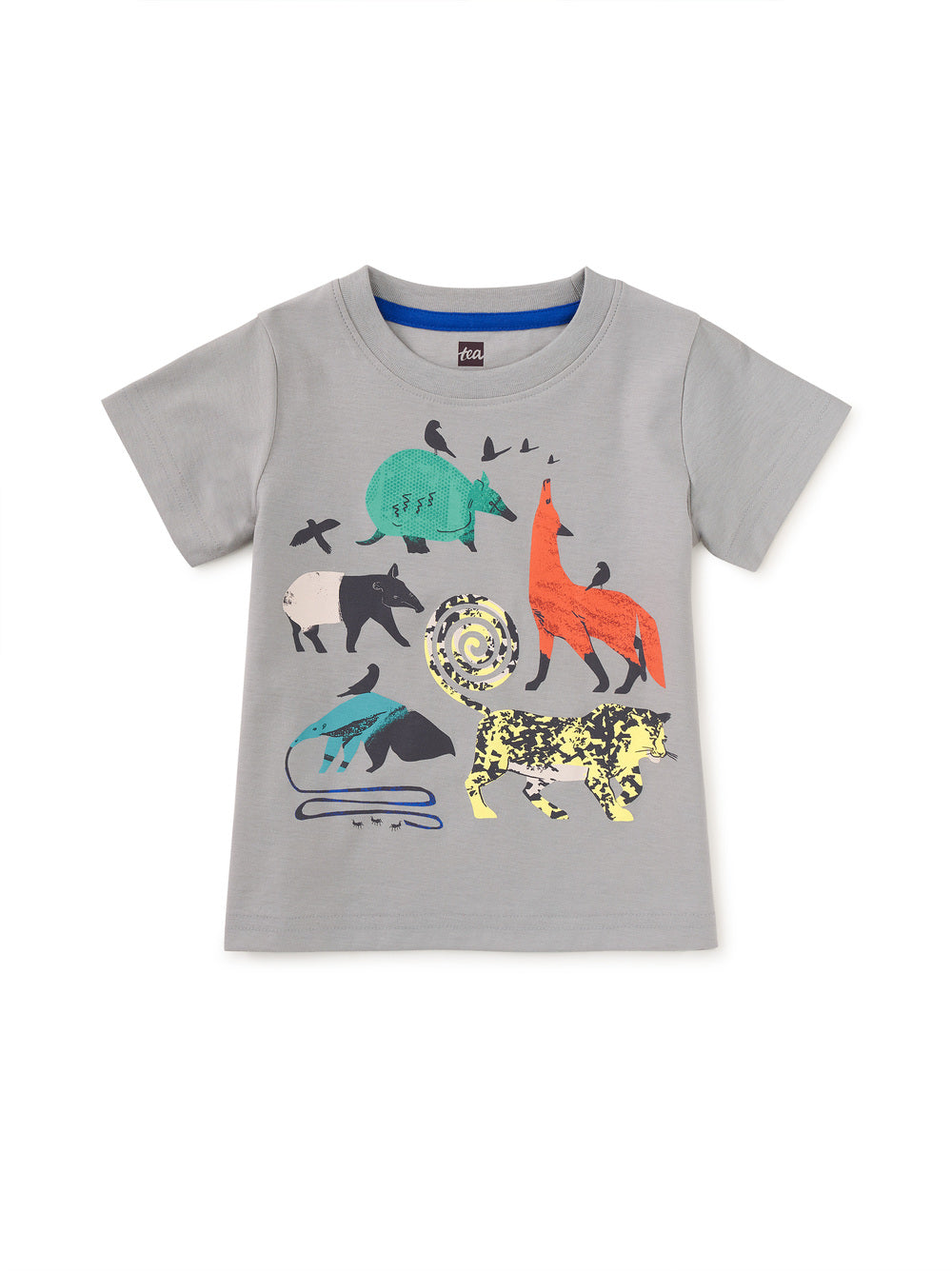 From our Brazil-inspired collection, this hand-drawn graphic celebrates the vibrant wildlife of the Amazon rainforest. Crafted from 100% soft cotton jersey, this short sleeve tee maintains its color and style with every wear and wash. Pair with shorts or pants to complete the look. Above thigh length.