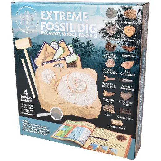Learn amazing things! Walk in the shoes of a paleontologist + dig for real fossils, identify your fossils with 15 collector cards, discover what makes each fossil unique.