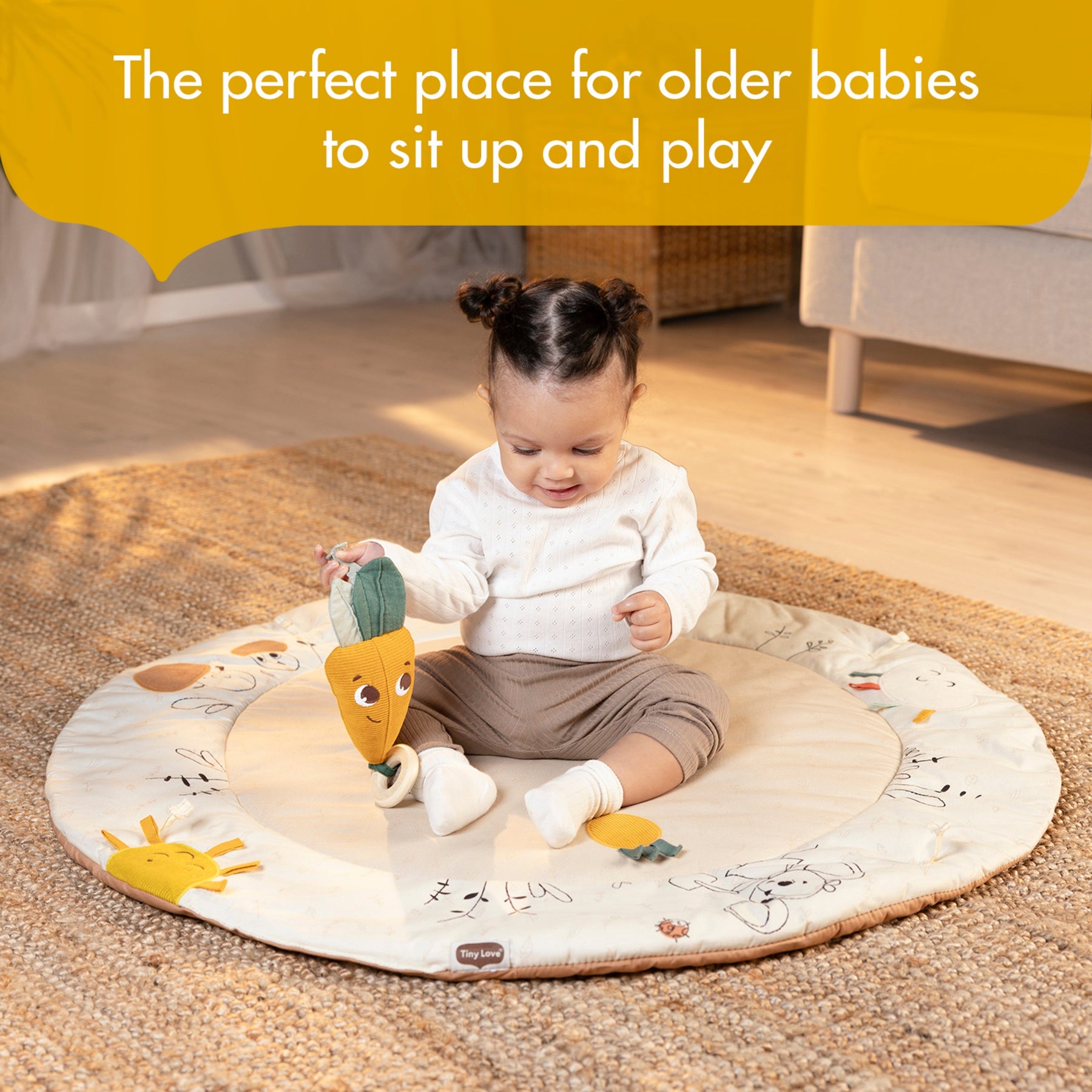The Tiny Love Garden of Adventures Collection was created with love and care by our child development experts. Each piece of the Garden of Adventures Collection fulfills Tiny Love’s vision to create fun, thoughtful products. Inspired by nature, the collection is designed to encourage babies to develop and explore. And with earthy, neutral colors and a warm vintage style, our play mat fits perfectly with any interior, providing a well-needed balance between living space and playroom.