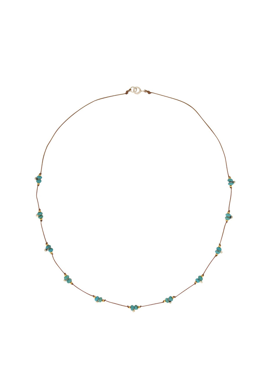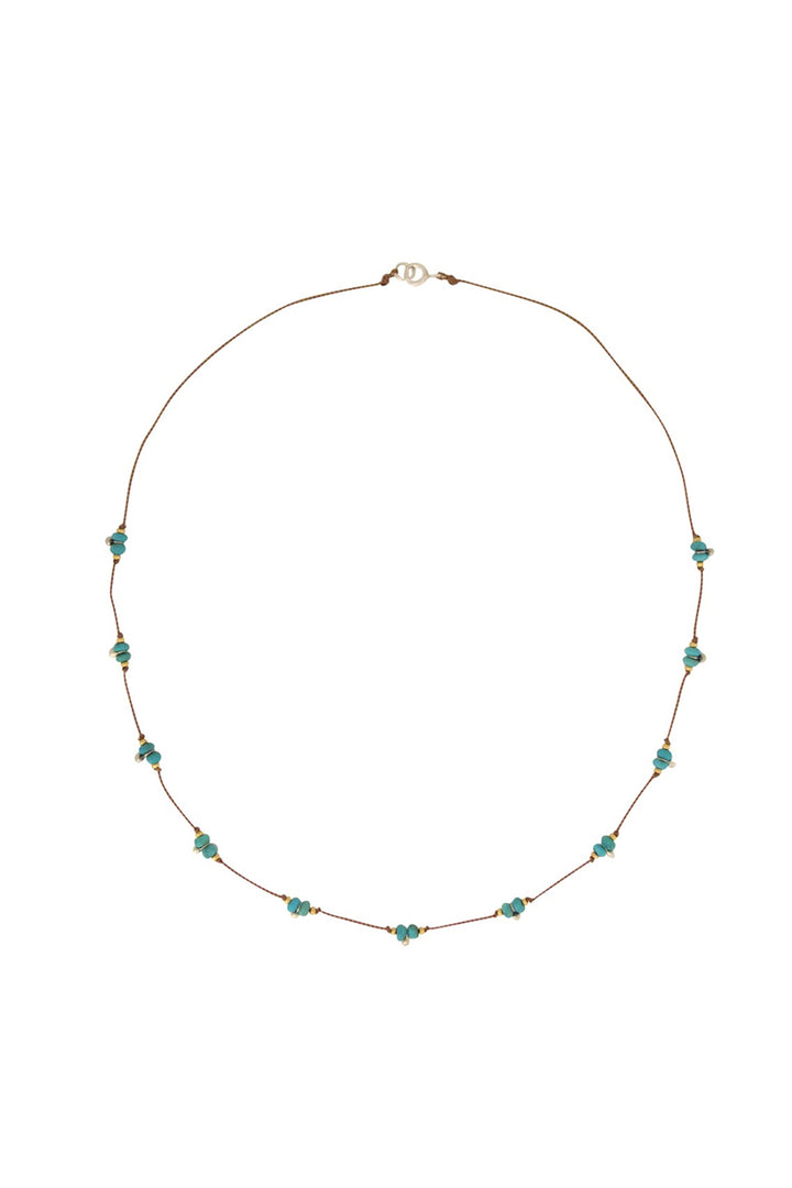 The best little layering necklace in the world! Mixed metals of 24k gold vermeil and sterling silver make a path around faceted nuggets of Arizona Turquoise. Once you put it on you will not want to take it off ever because you'll find it goes with every single thing you own! The the mixed metal nature of this piece means you don't have to coordinate your metals anymore because it all just WORKS! This is a delicate necklace that pops a bit of color and delivers in a big way - a Bronwen Lodato daily uniform piece for sure.
