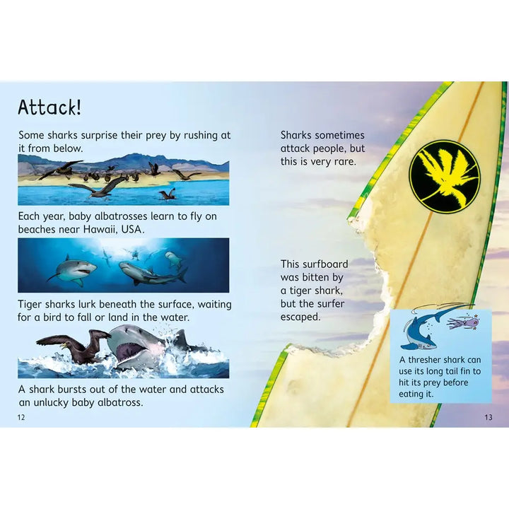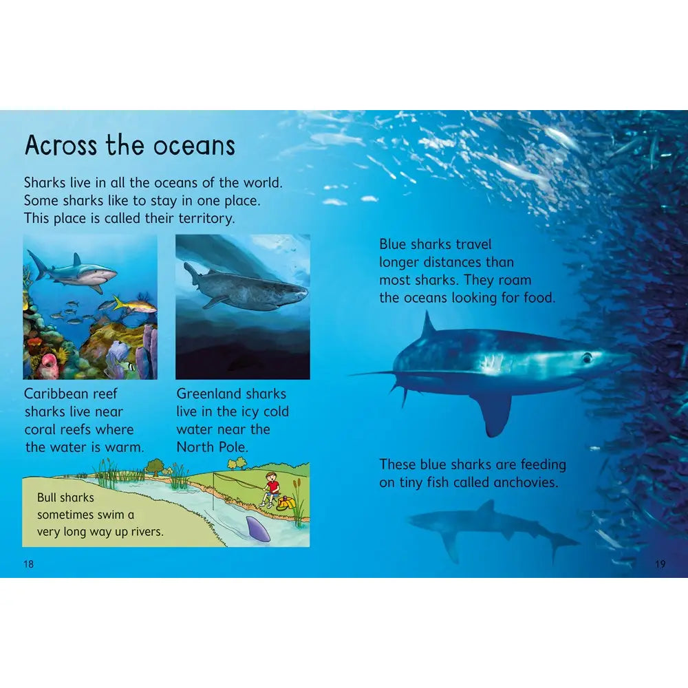 Discover everything you need to know about sharks, thanks to this 32page non-fiction book for young readers What do sharks like to eat? Which shark glows in the dark? And why do some sharks never stop swimming? Young readers can find the answers to these questions and lots more fun facts in this shark-infested book. Part of an exciting series for children beginning to read on their own, with easy-to-read text written with the help of a reading expert. Includes links to carefully selected websites where children can watch video clips of sharks and find out more.